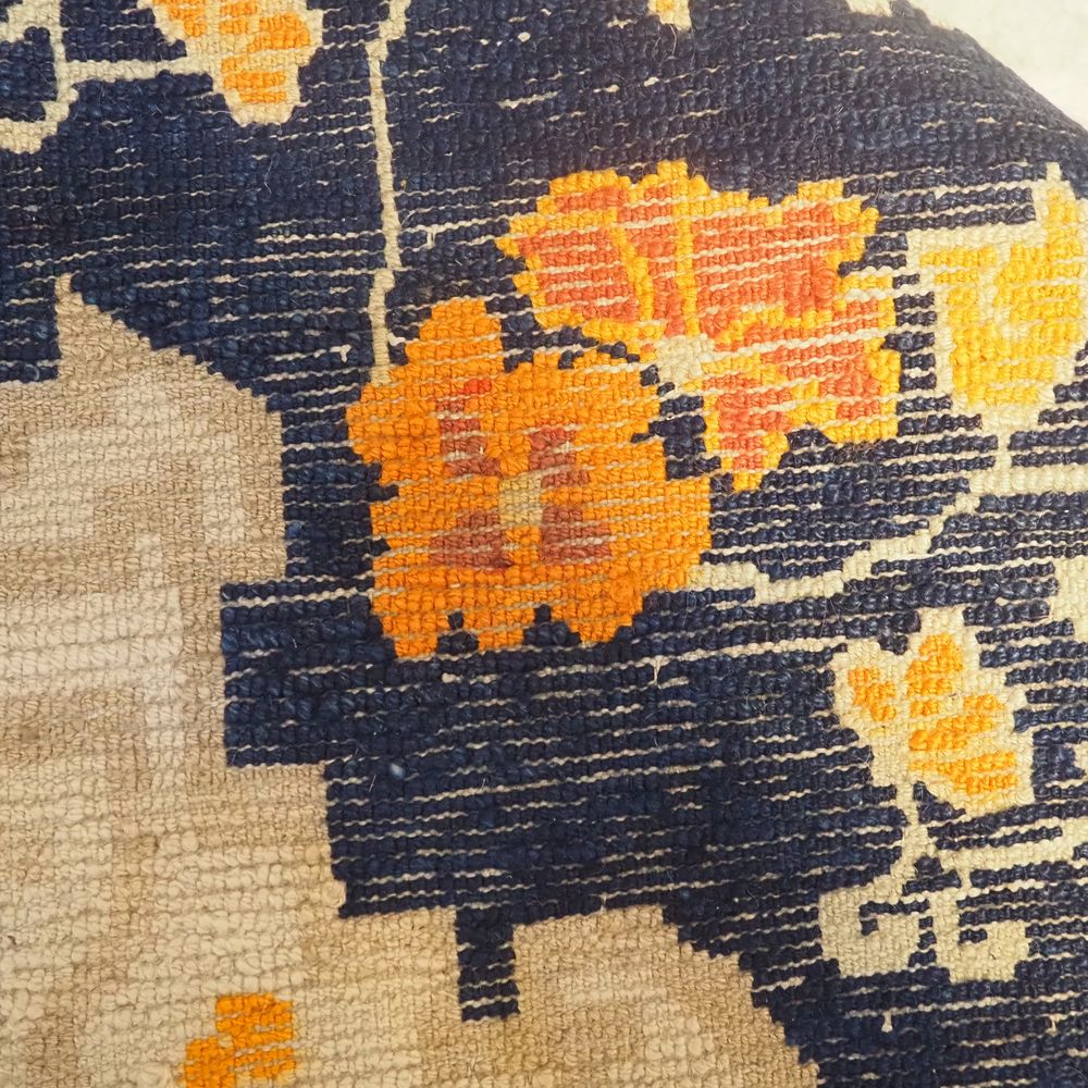 Antik Finish, tapis chinois vers 1900, laine aux points noués main, décor floral avec médaillon sur champ bleu indigo, très bel état d’origine, dim : 275 x 195 cm