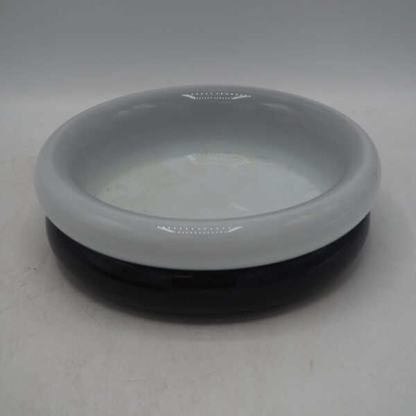 Werther Toffolini e Piero Palange / Barbini-Murano : Vide-poche, verre soufflé bouche, blanc laiteux et noir, H: 7,5, diam: 26 cm