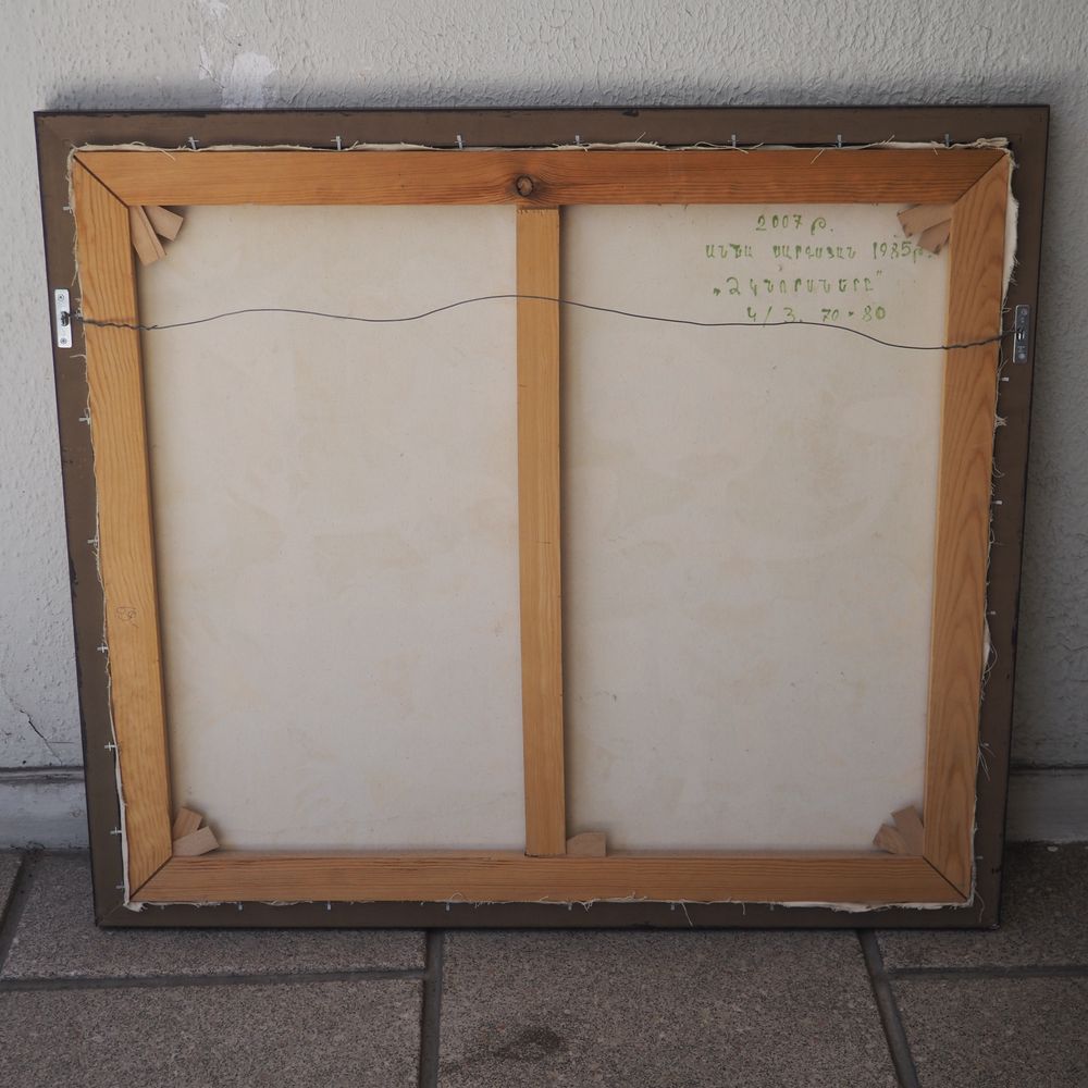 Anna Sargsyan : Acrylique sur toile, 2 amis en bord de mer, signée en bas à droite et contre-signée, datée 2007, dim: 70 x 80 cm