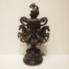 Travail italien : Vase couvert 19eS, régule à patine foncée, chevaux de mer et 5 puttis sur socle de bois tourné laqué noir, H: 61, L: 33, P: 26 cm