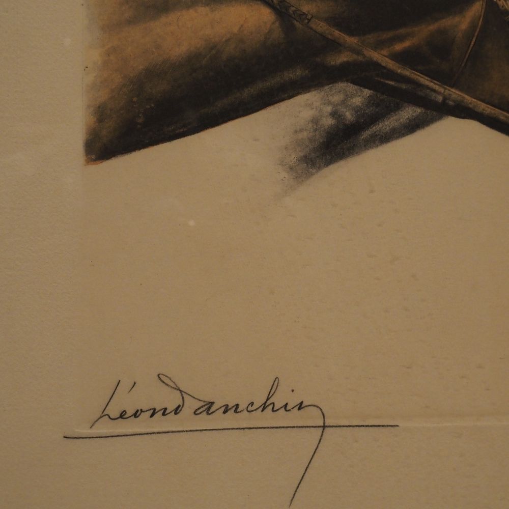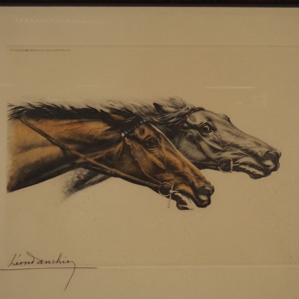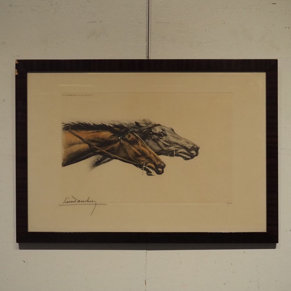Léon Danchin : Aquateinte, présentant 2 têtes de chevaux de course, signée en bas à gauche, dim image: 30 x 46 cm, dim papier: 44 x 64 cm