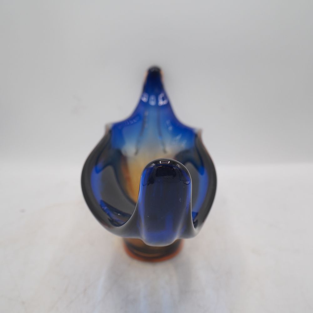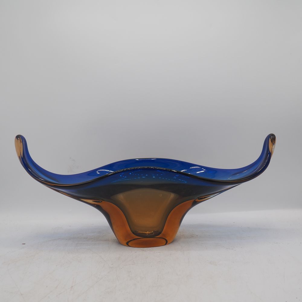 Murano : coupe sommerso, verre coulé bleu et ocre, H: 18, L: 41, P: 12,5 cm