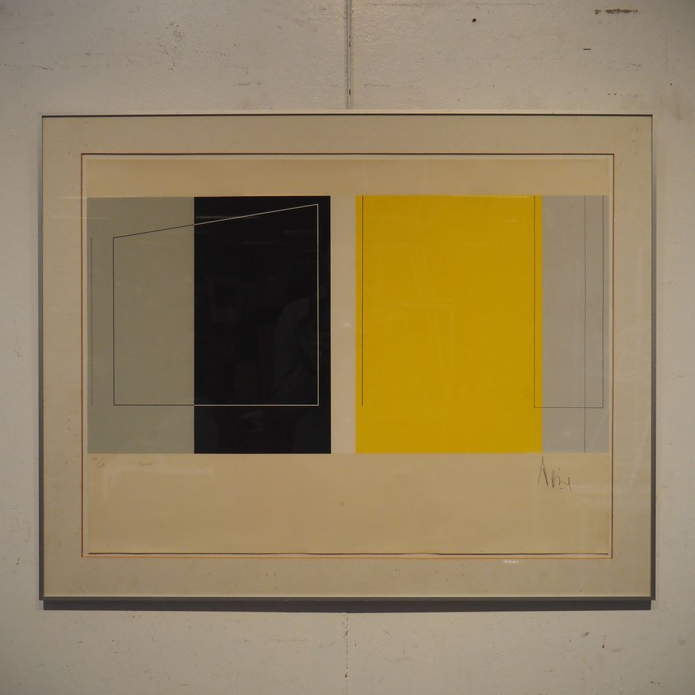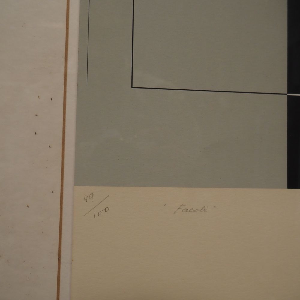 Luc Peire : Lithographie couleur, « Facolé », composition géométrique et linéaire, signée au crayon en bas à droite, numérotée 49/100, encadrée sous verre, dim: 55 x 73 cm