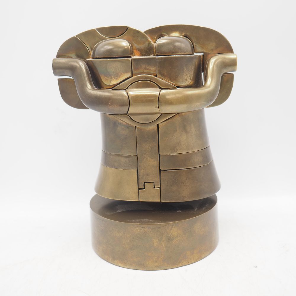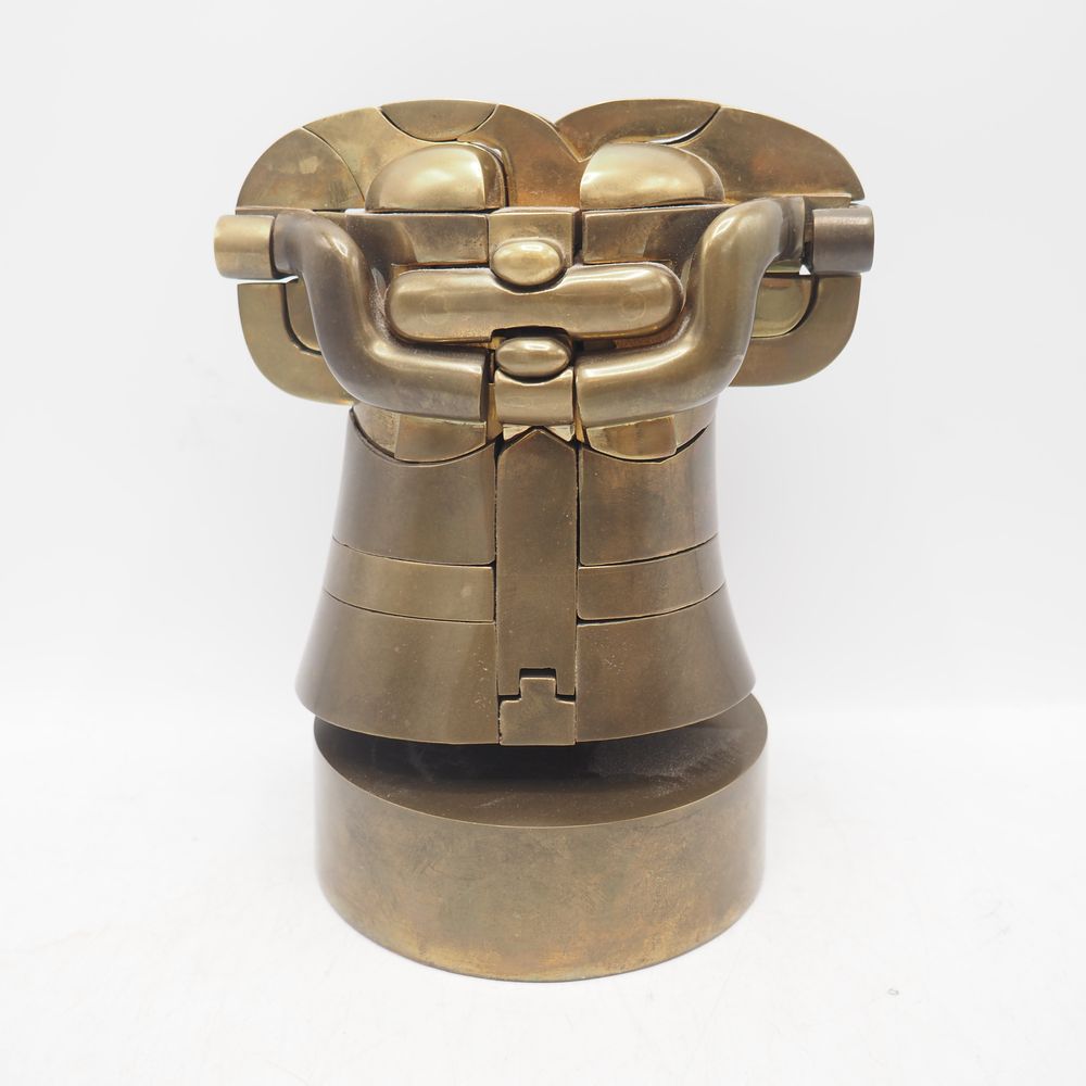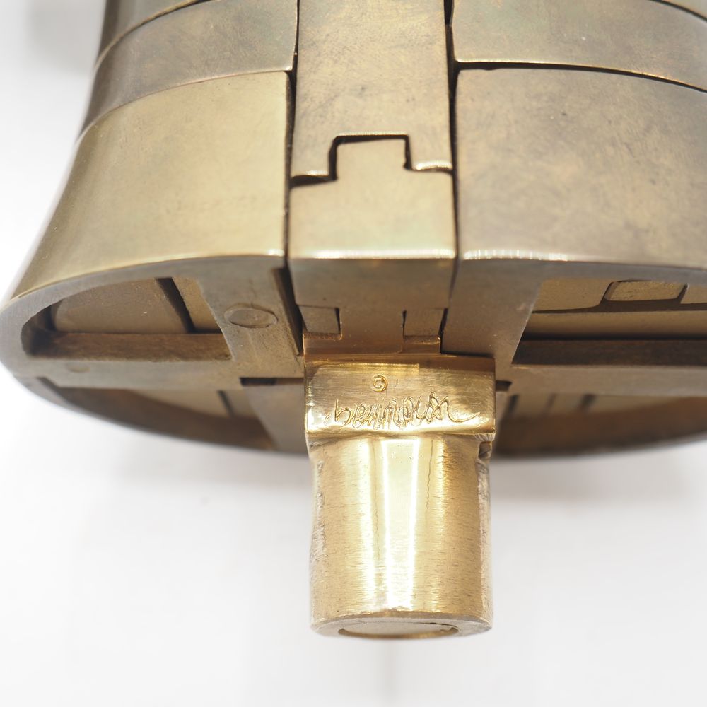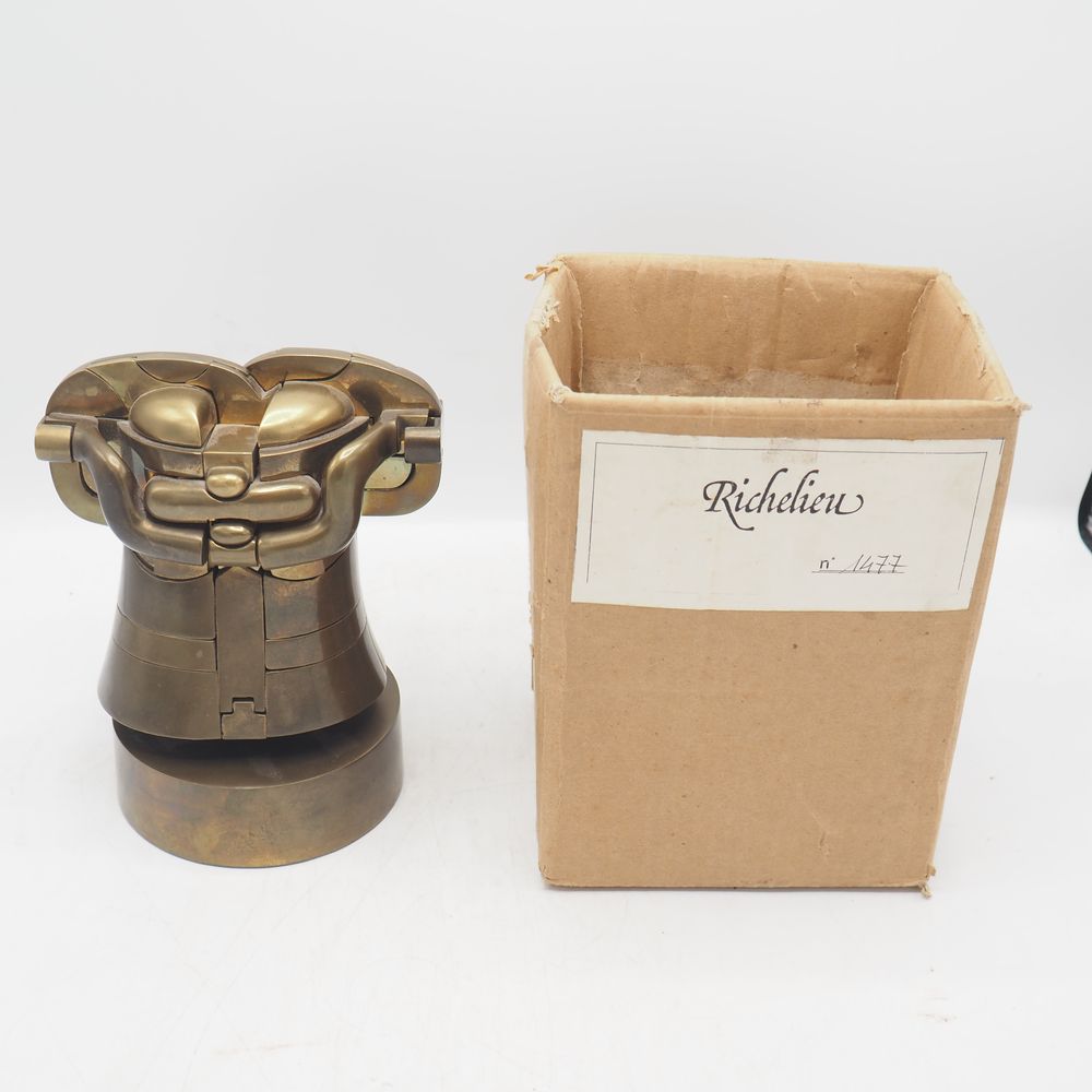 Miguel Berrocal Ortiz (Malaga 1933-2006) : Sculpture titrée « Richelieu », année 1968/1973, laiton poli, 59 éléments démontables, signée et numérotée 2000 exemplaires, édition épuisée, avec plan de montage et boite d’origine, H: 20, L: 15,5, P: 12,3 cm, (Droit de suite de 4%)