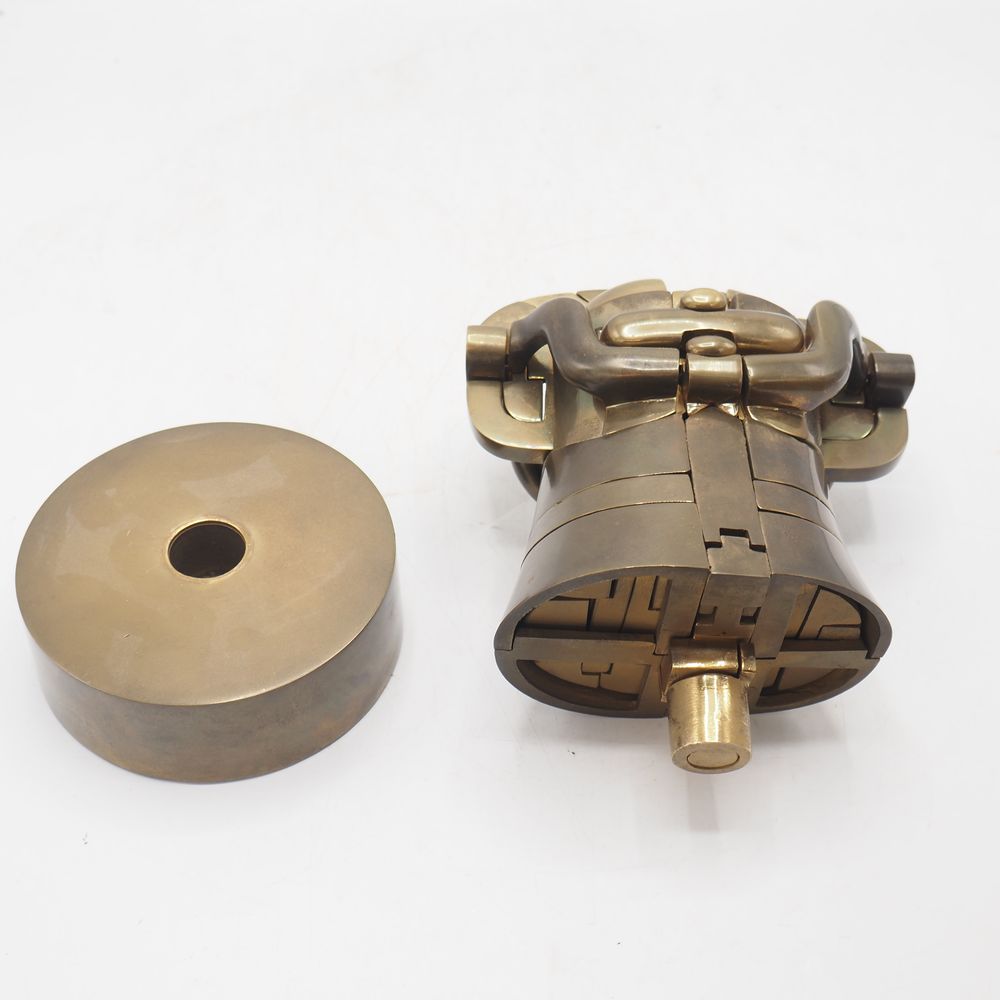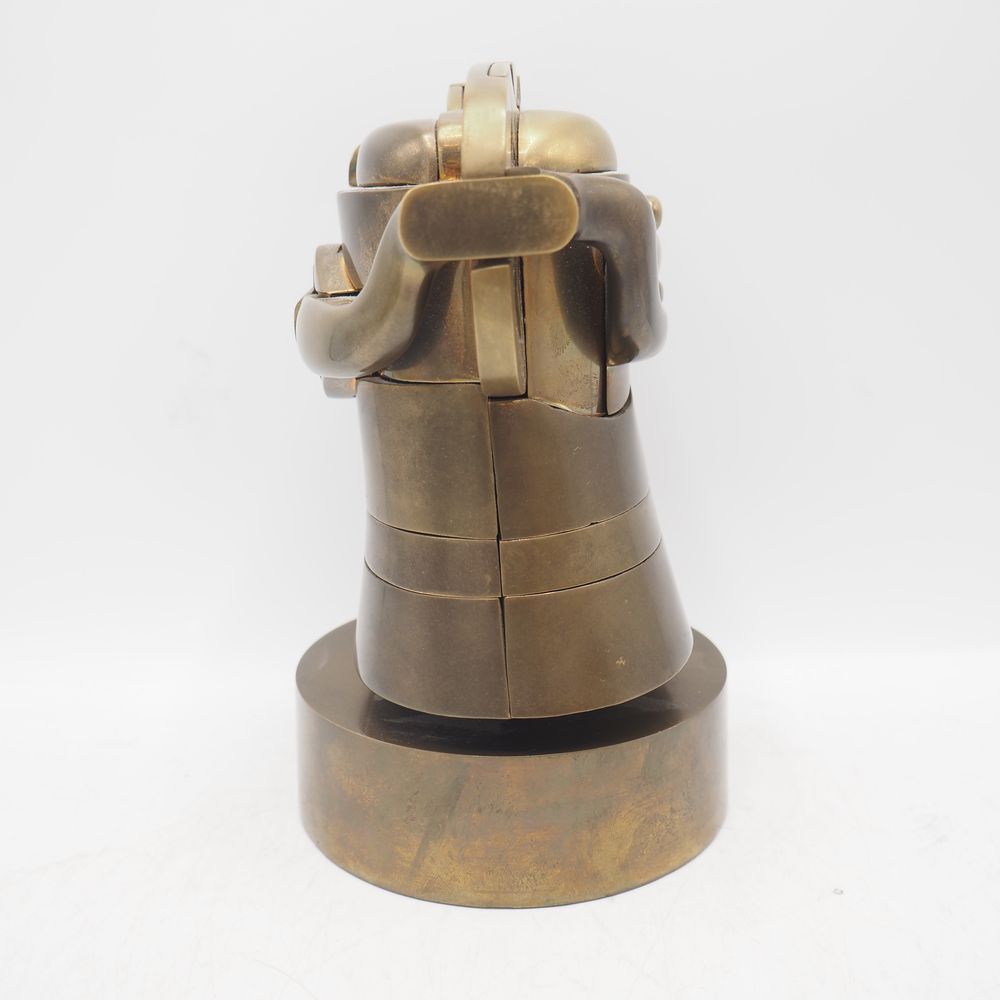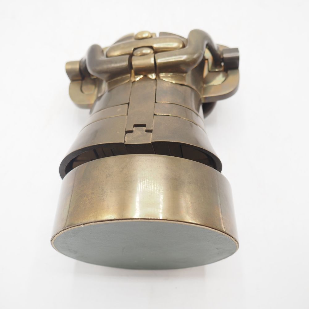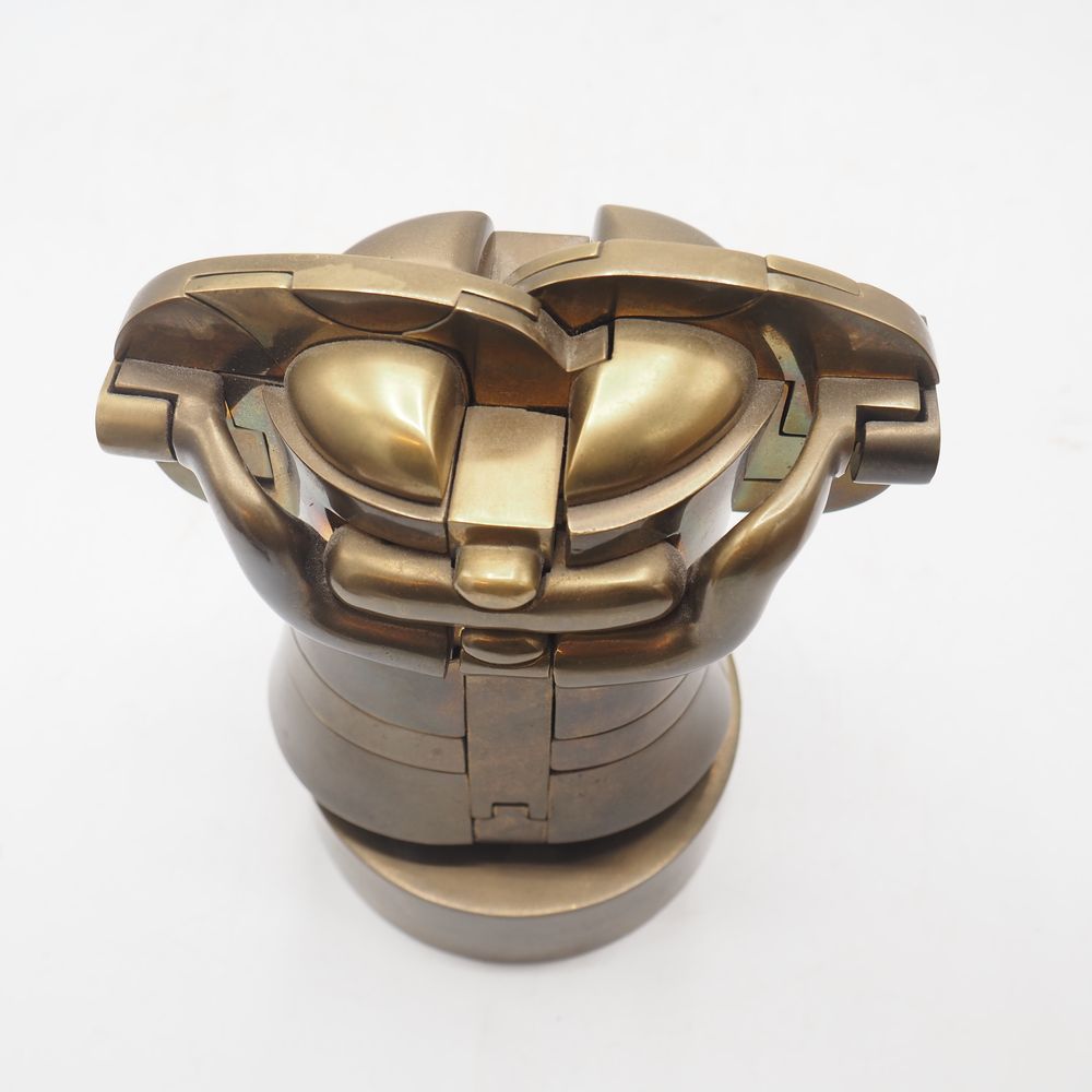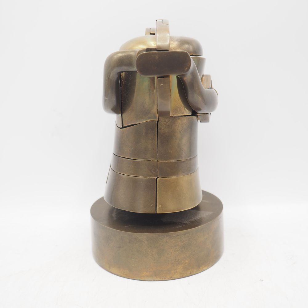 Miguel Berrocal Ortiz (Malaga 1933-2006) : Sculpture titrée « Richelieu », année 1968/1973, laiton poli, 59 éléments démontables, signée et numérotée 2000 exemplaires, édition épuisée, avec plan de montage et boite d’origine, H: 20, L: 15,5, P: 12,3 cm, (Droit de suite de 4%)