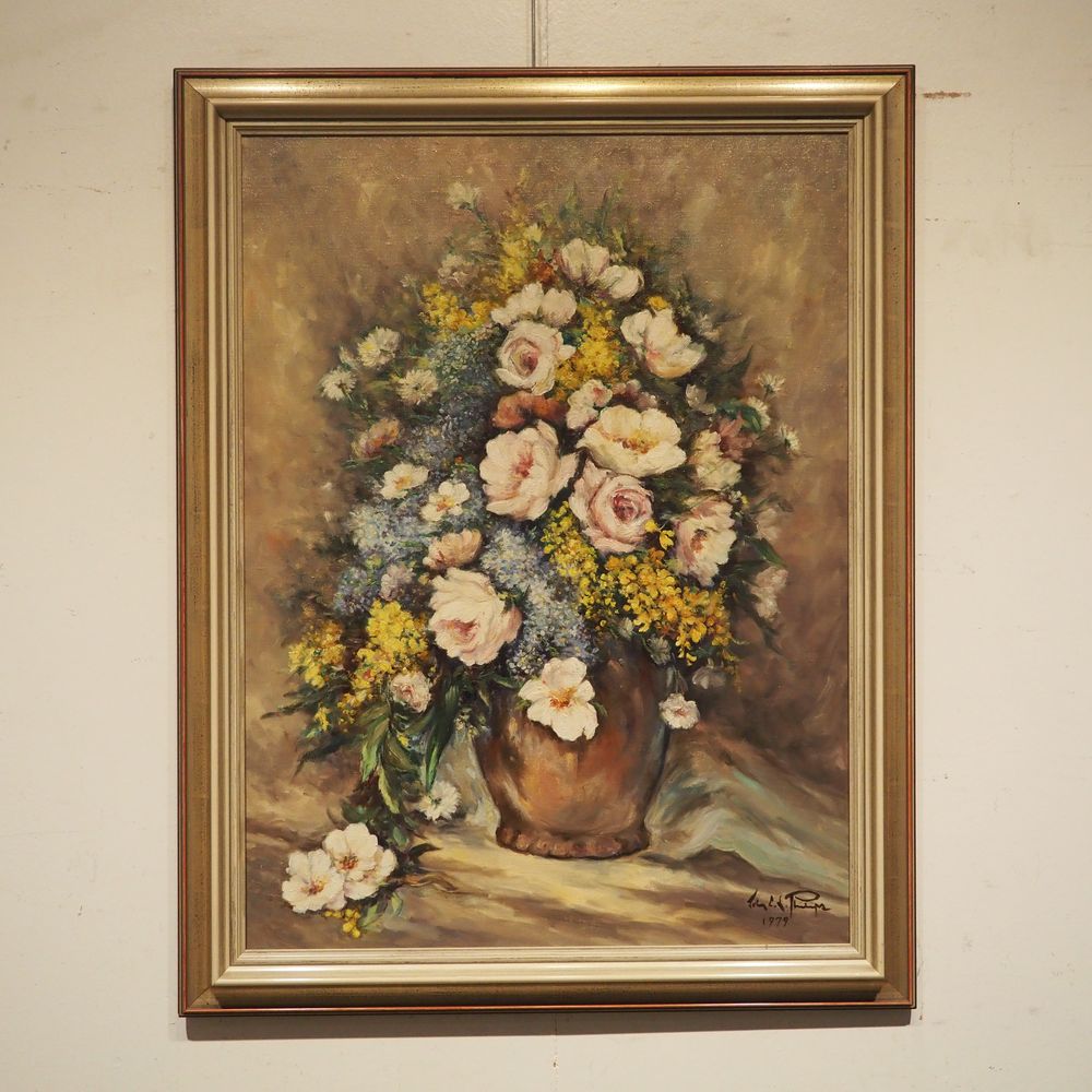 John Philips (XX) : Huile sur toile, nature morte aux fleurs, signée en bas à droite, datée 1979, dim : 80 x 60 cm