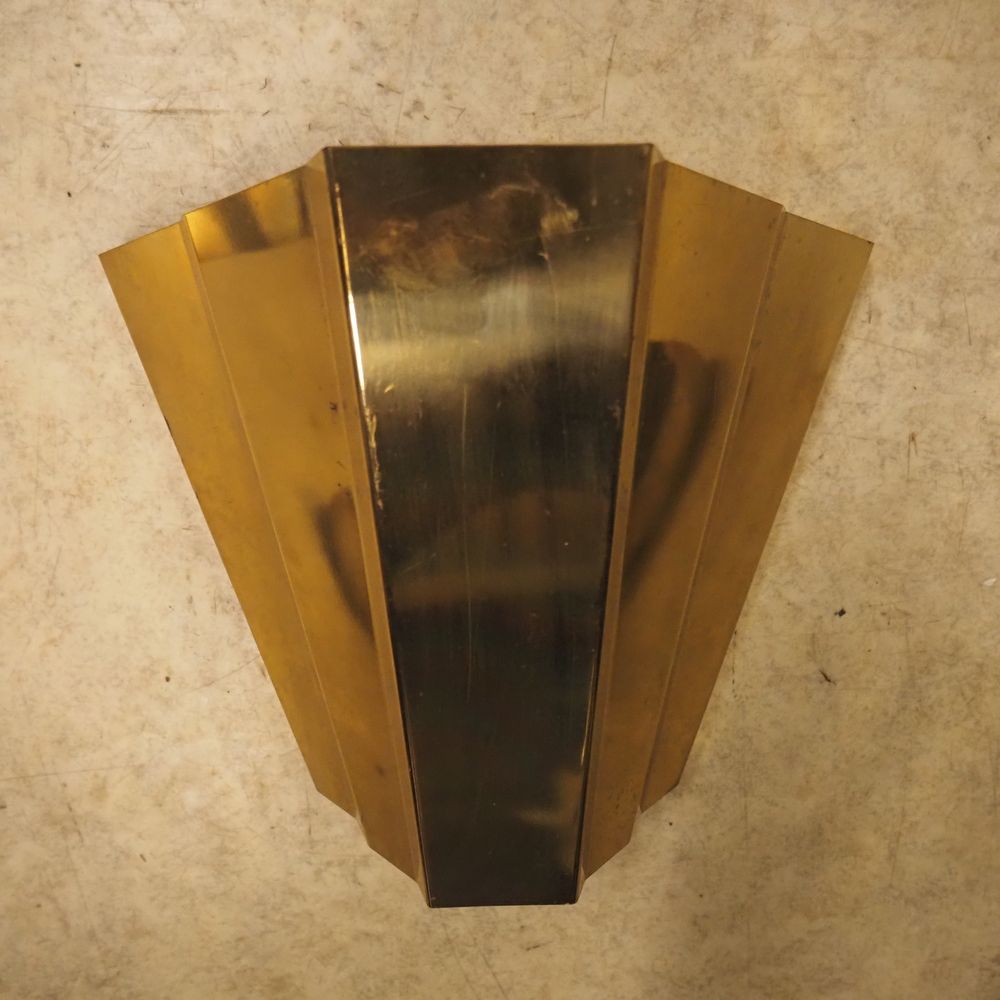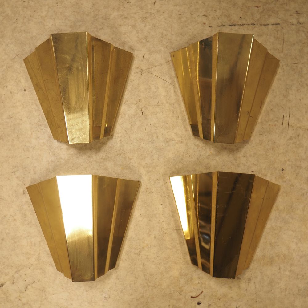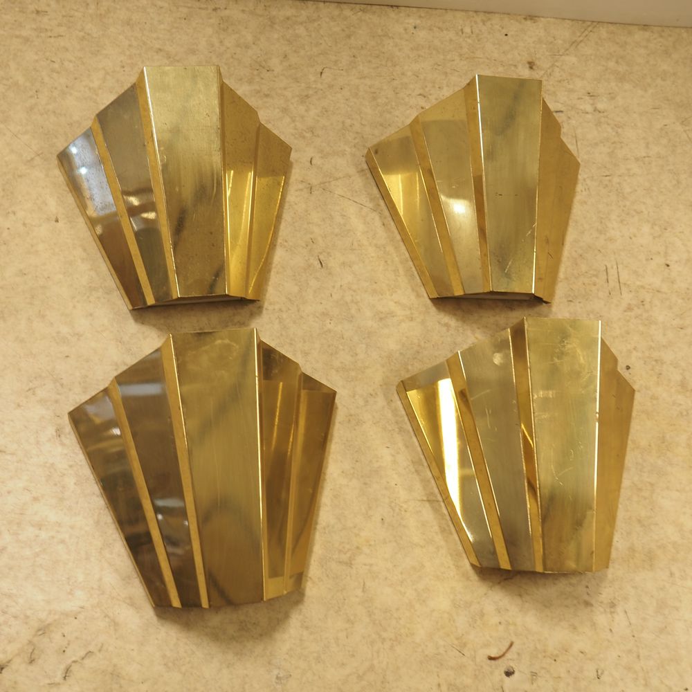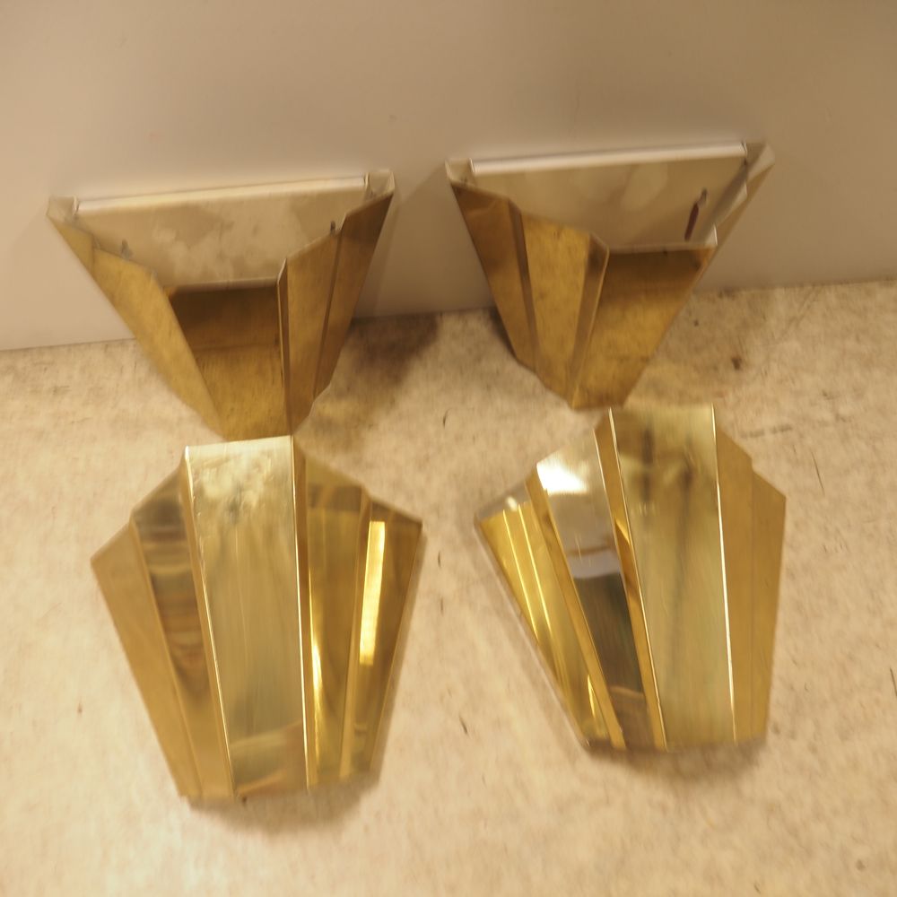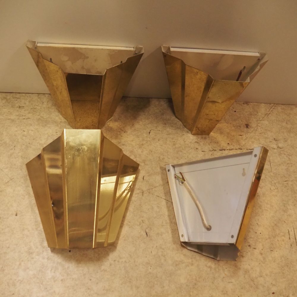 Lot de 4 appliques vers 1970 : Métal plié doré et intérieur laqué blanc, H: 23,5, L: 26, P: 14,5 cm