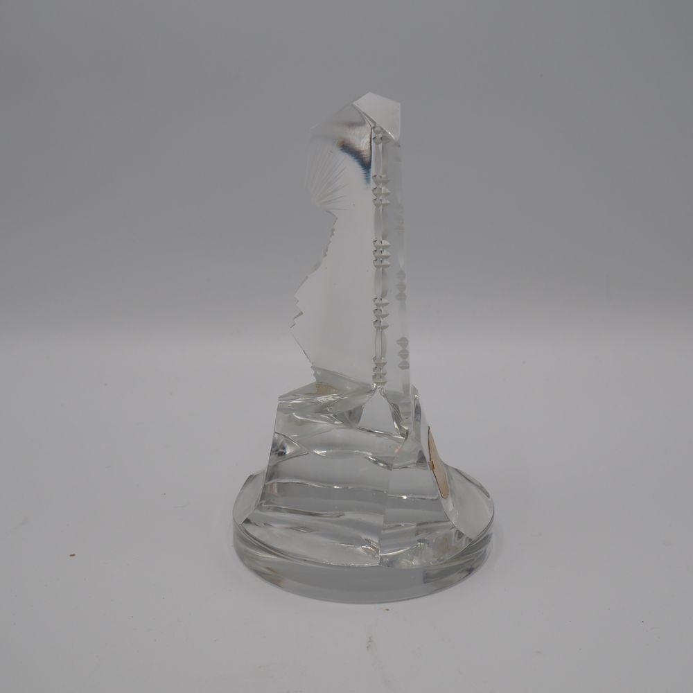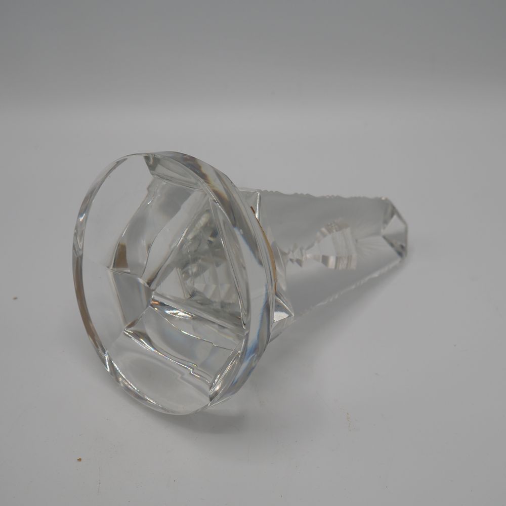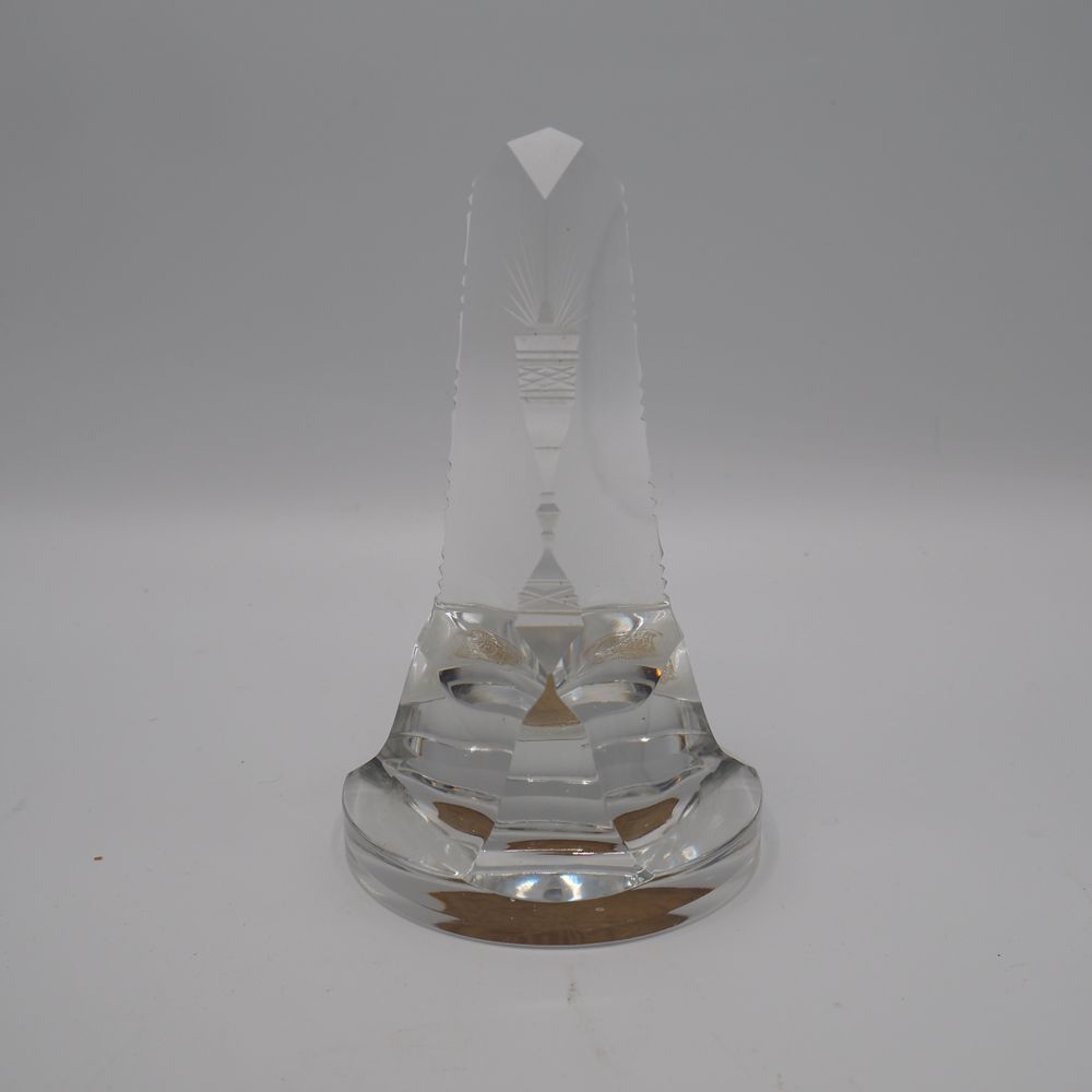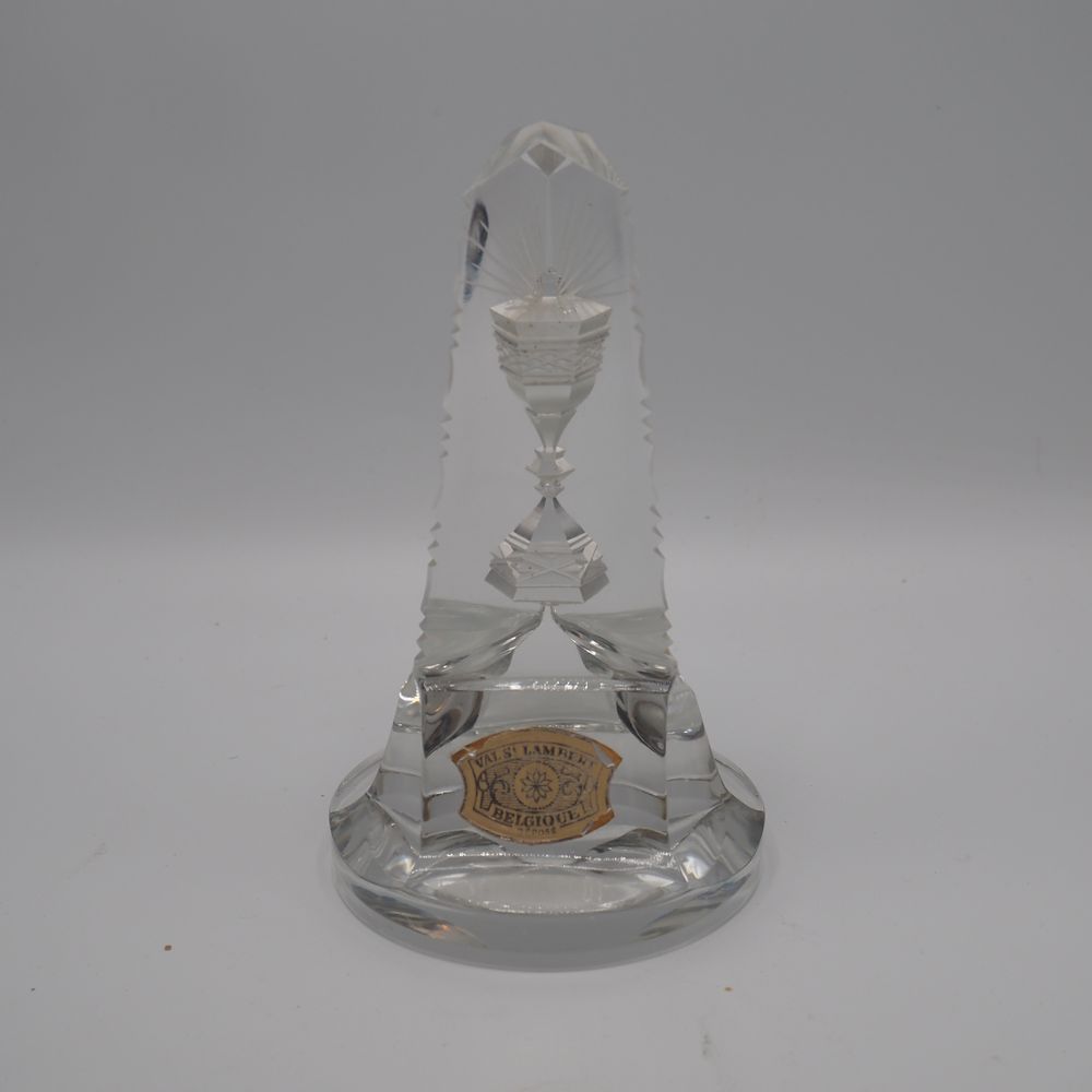 Val Saint-Lambert : Sculpture religieuse, cristal clair taillé, figurant un calice, porte le sticker, H: 16,7, diam: 10 cm