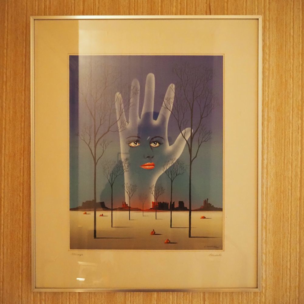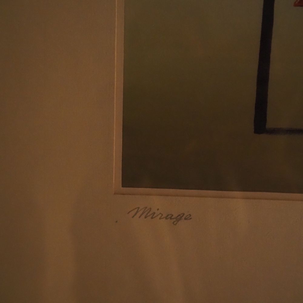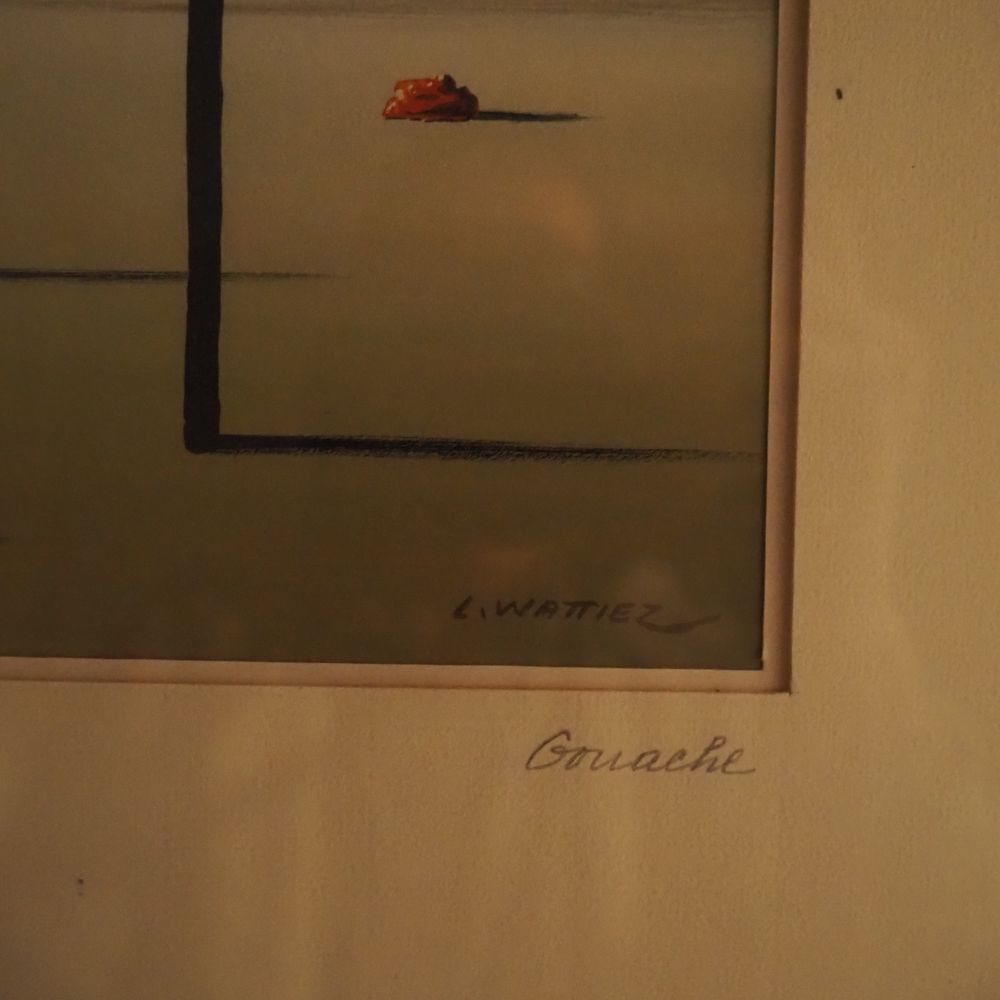 Louis Wattiez : Gouache surréaliste sur papier, titrée « Mirage », signée en bas à droite, dim : 43 x 34 cm, encadrée sous verre