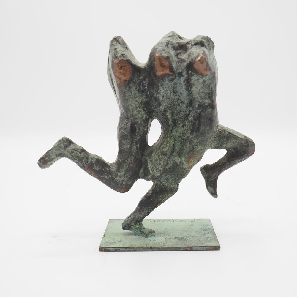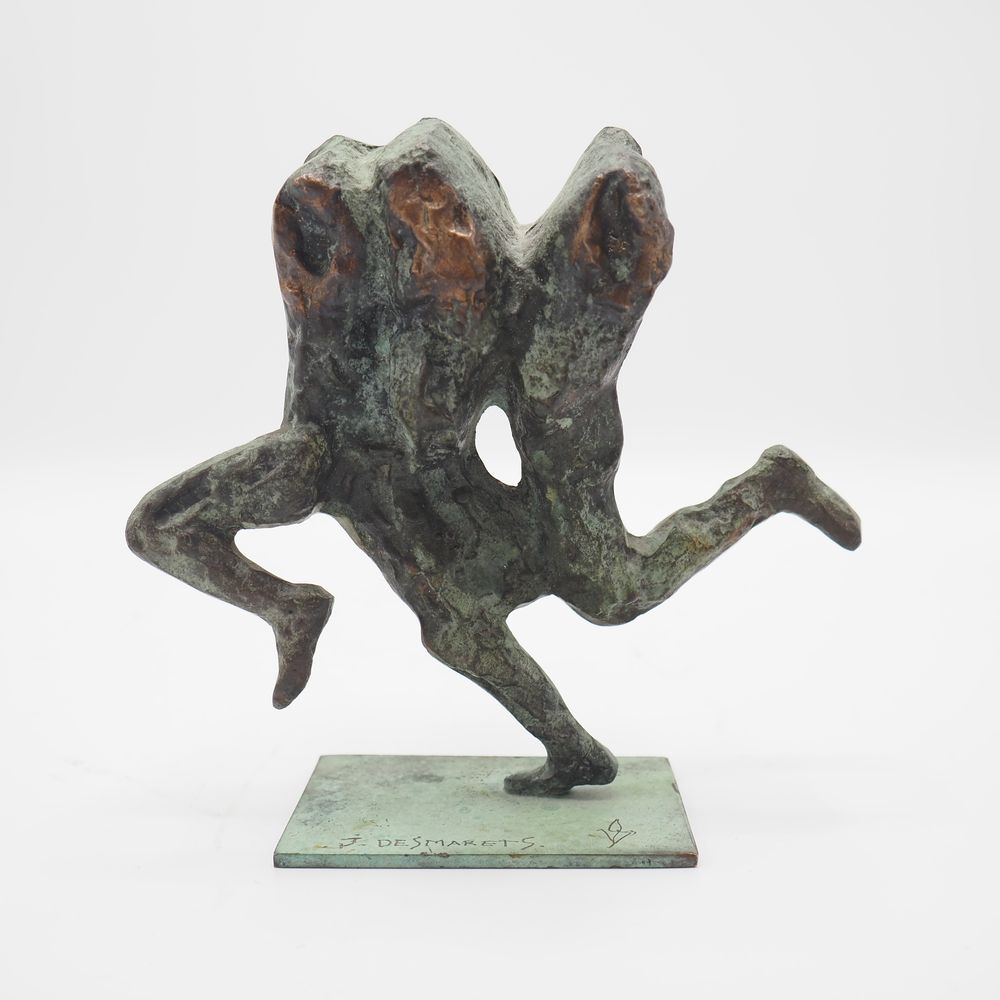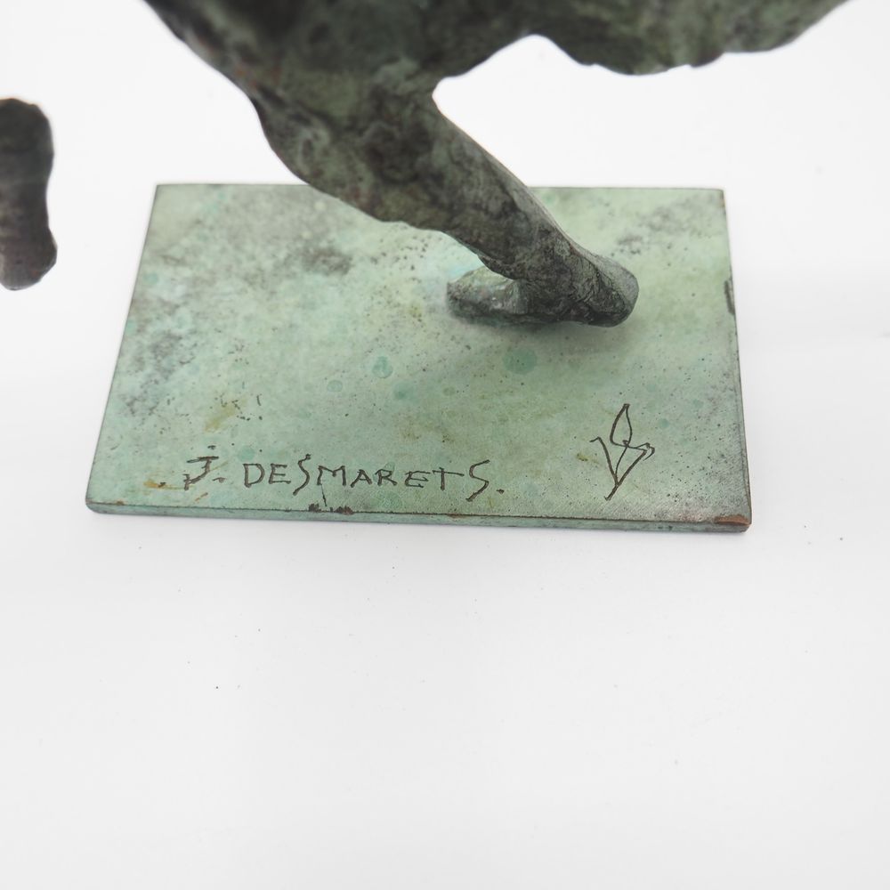 Jean Desmarets (1961) : Sculpture, « La course », bronze massif à patine verte et dorée, signée sur la terrasse, datée 1996, numérotée 1235/1350 exemplaires, H: 14, L: 15 cm