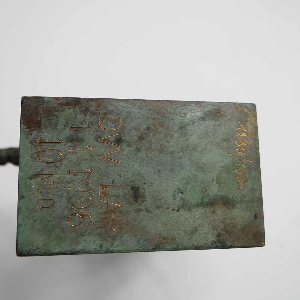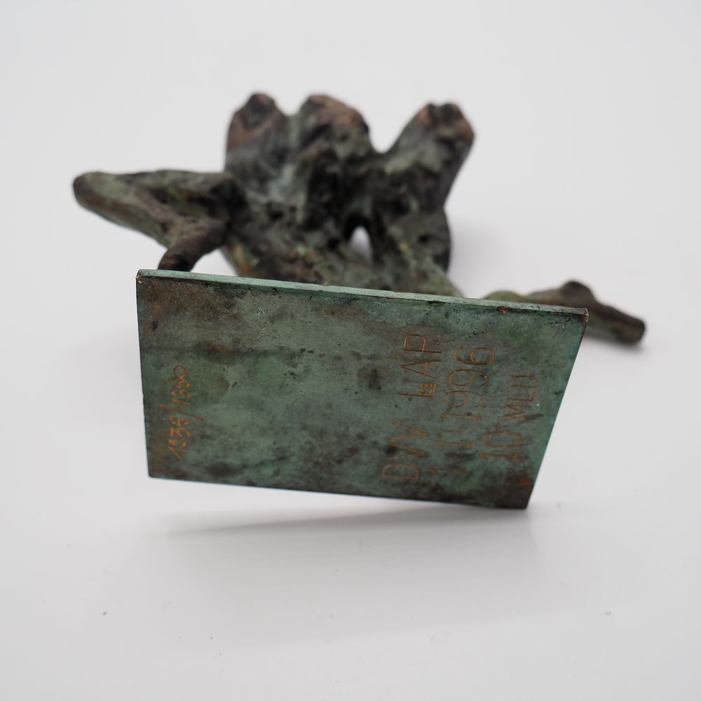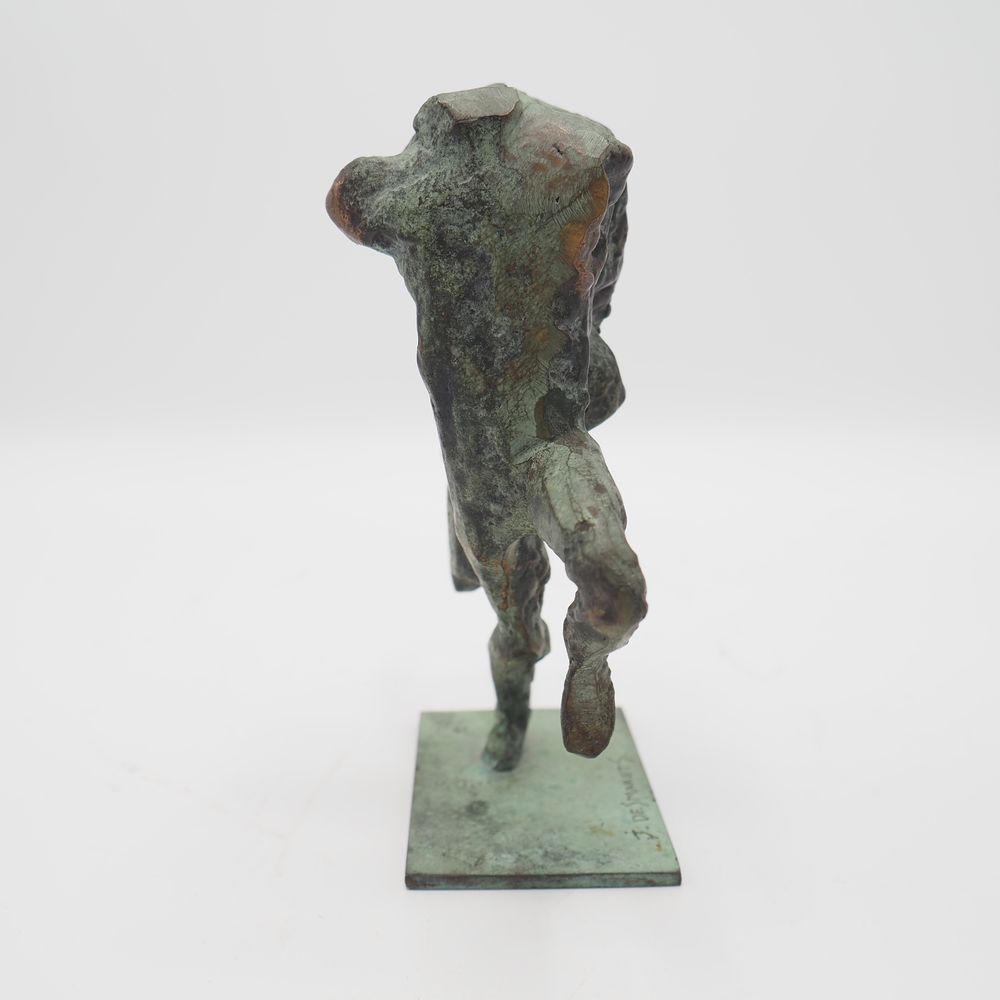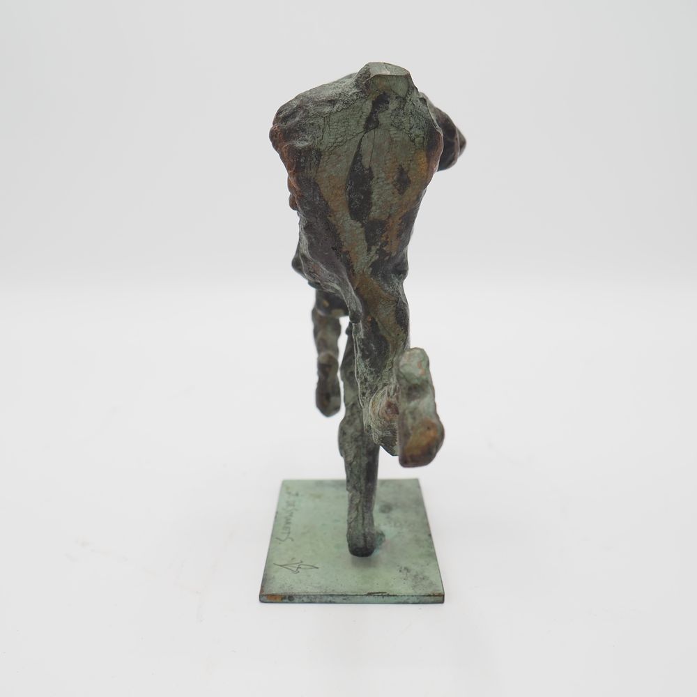 Jean Desmarets (1961) : Sculpture, « La course », bronze massif à patine verte et dorée, signée sur la terrasse, datée 1996, numérotée 1235/1350 exemplaires, H: 14, L: 15 cm