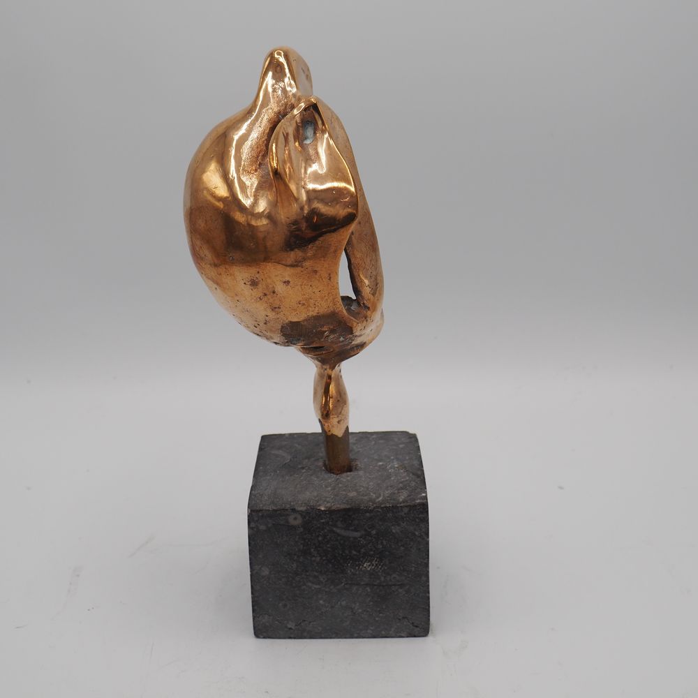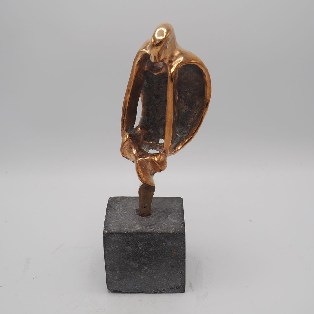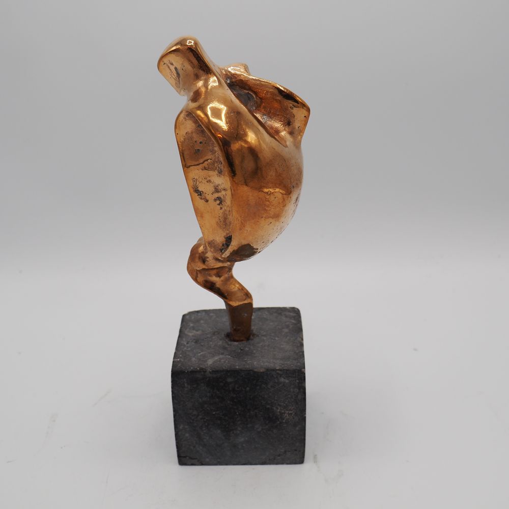 Léo ? : Sculpture bronze poli sur socle de granit, figurant un personnage, signée à la base, H avec socle : 24,5, H sans socle : 18 cm