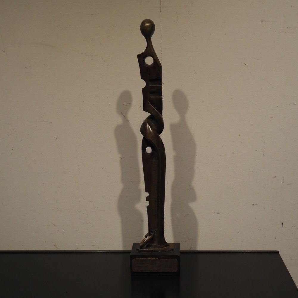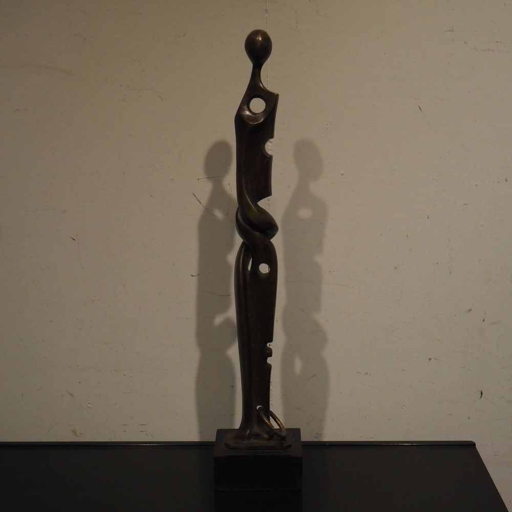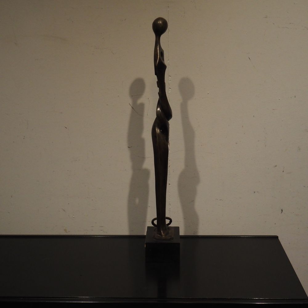 Travail Africain : Sculpture, « Femme », bronze massif patiné sur socle de bois, H sans socle: 62 cm