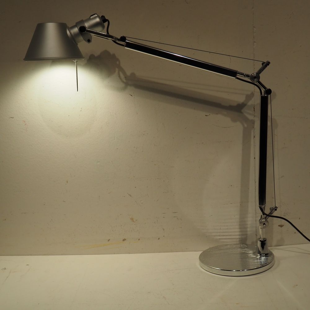 Michele Delucci & Giancarlo Fassina / Artemide : Lampe de bureau, modèle toloméo, éclairage LED, axe en aluminium, pieds disque