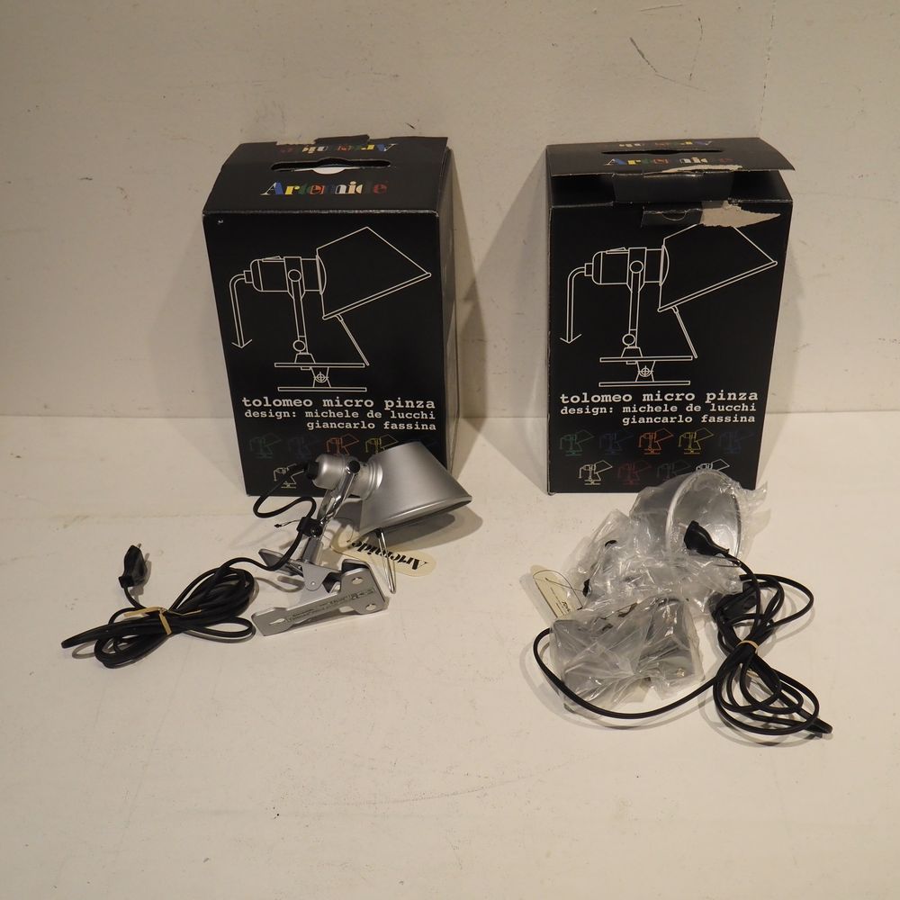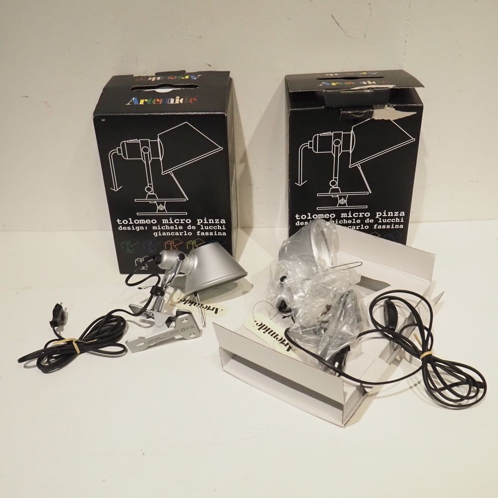 Michele Delucci & Giancarlo Fassina / Artemide : Paire d’appliques, modèle toloméo micro pinza, aluminium, pieds disque, boite d’origine
