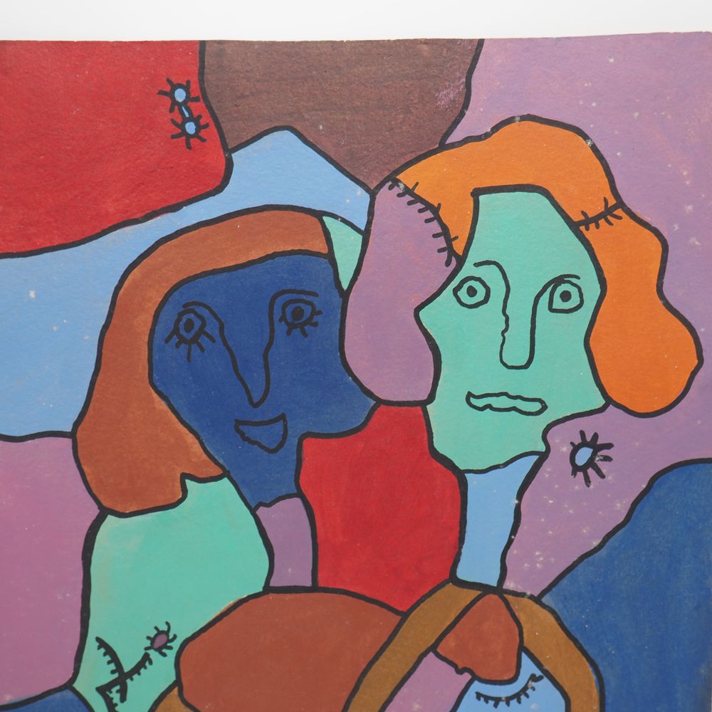 Gaston Chaissac (1910-1964) d’après ? : Huile sur carton, 2 portraits de dame, signée en bas à droite, (auréoles + traces d’ancienneté) dim: 44,6 x 33,6 cm