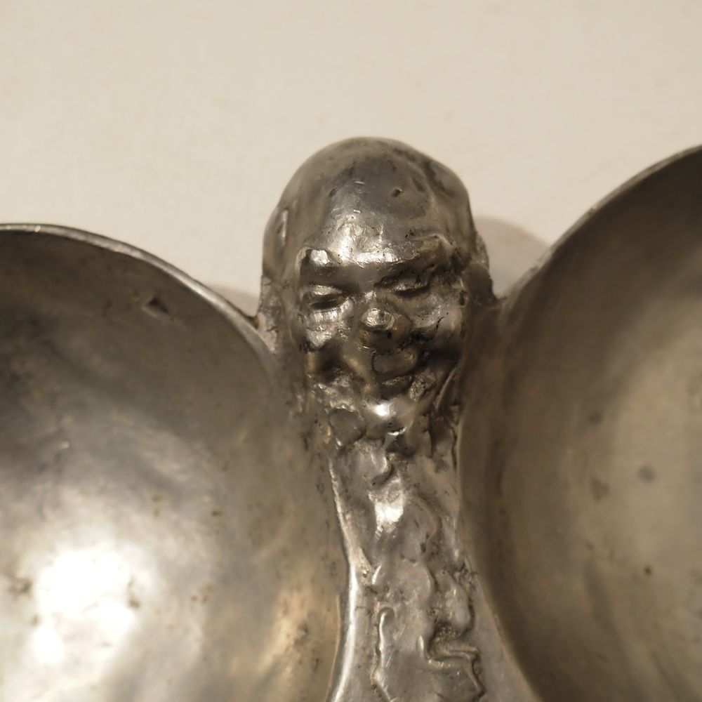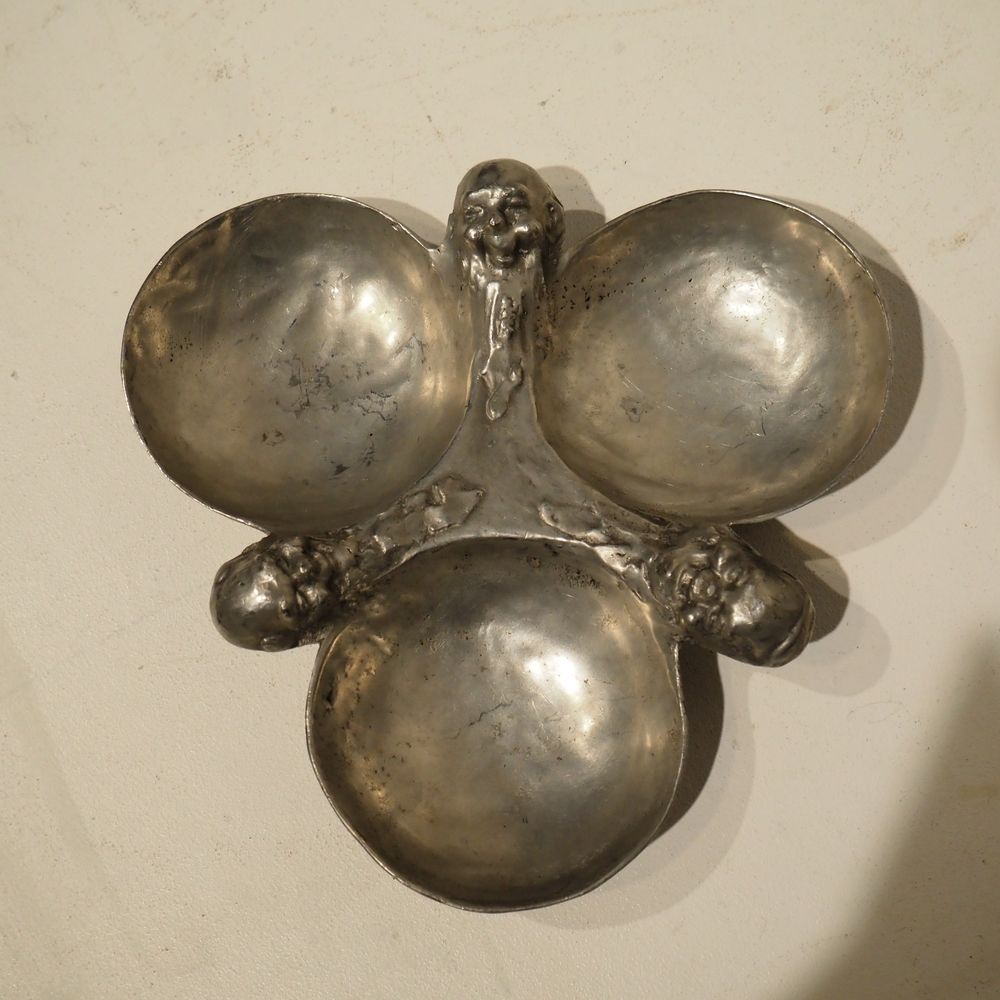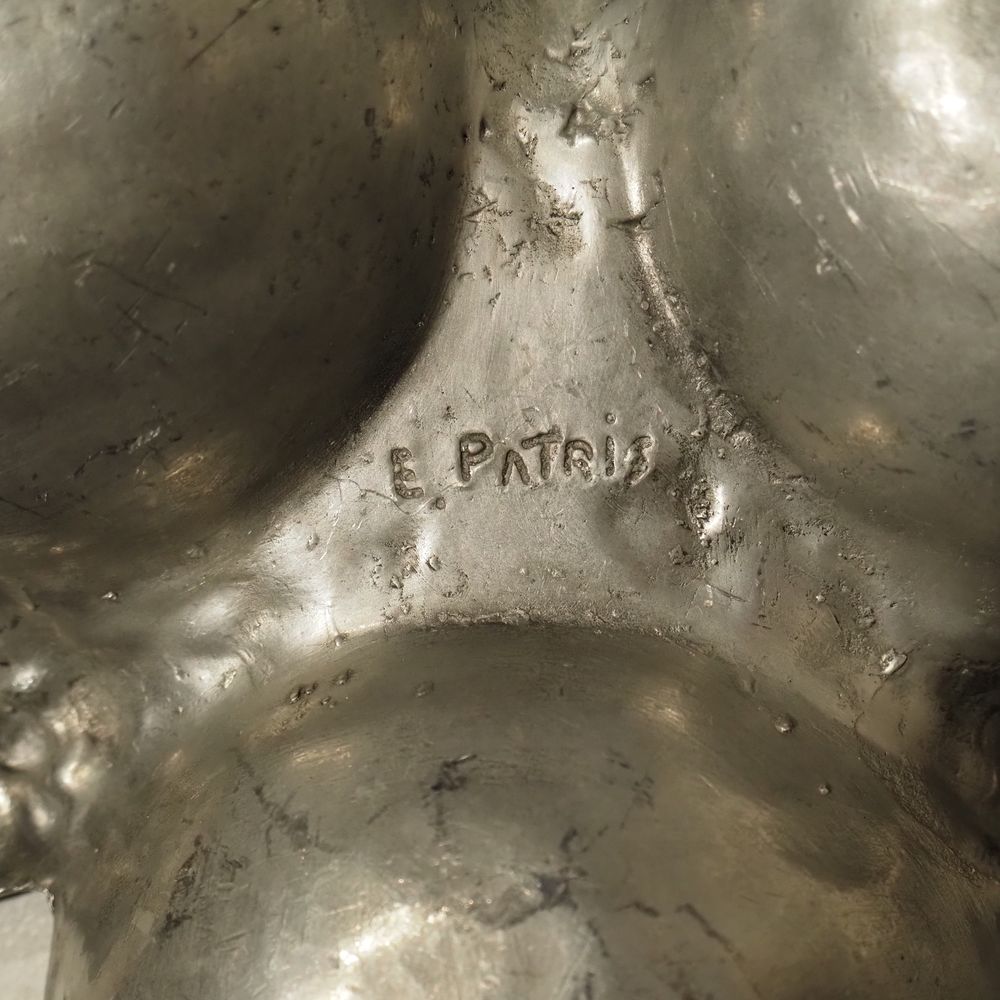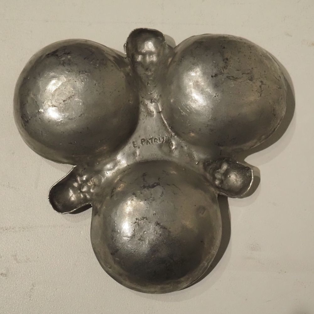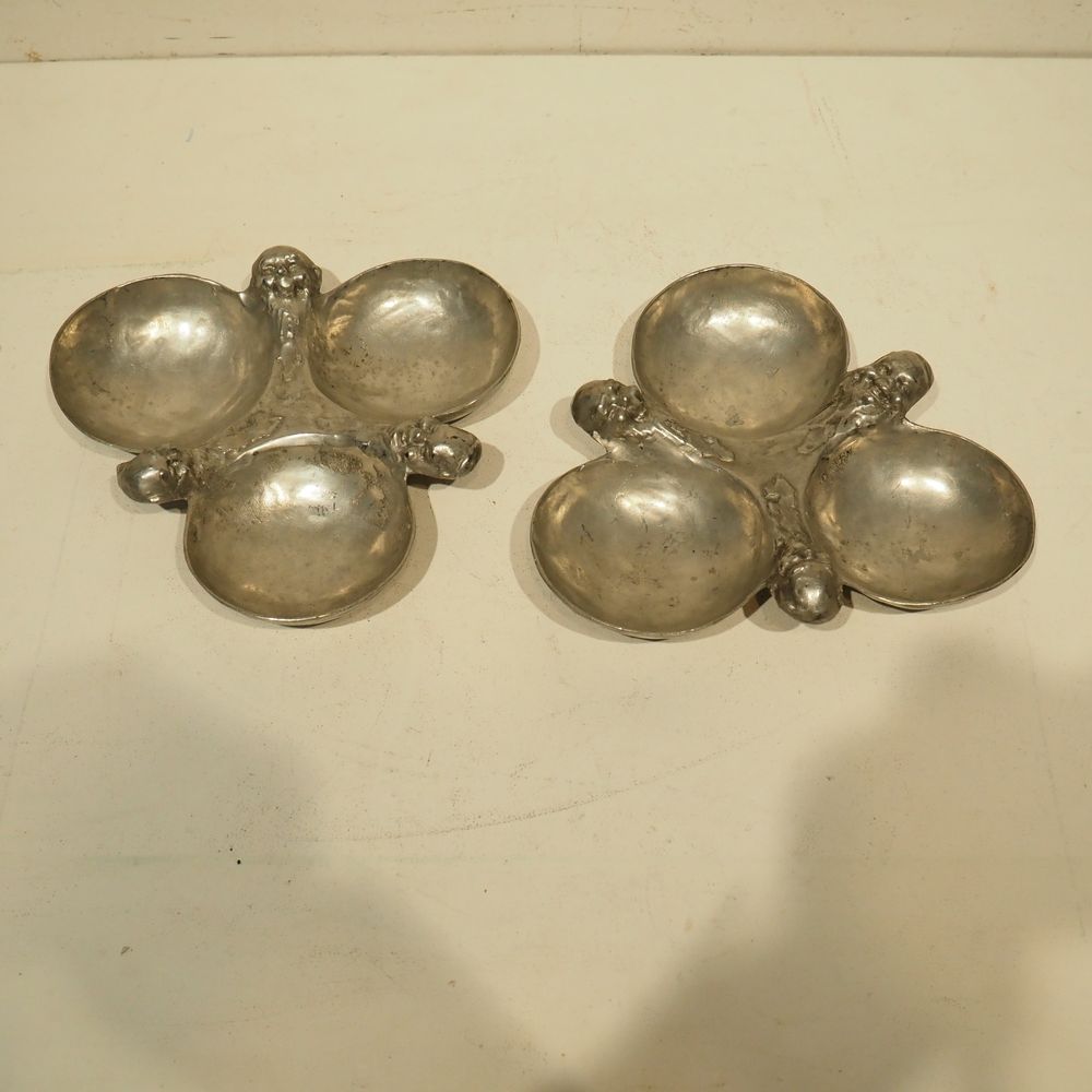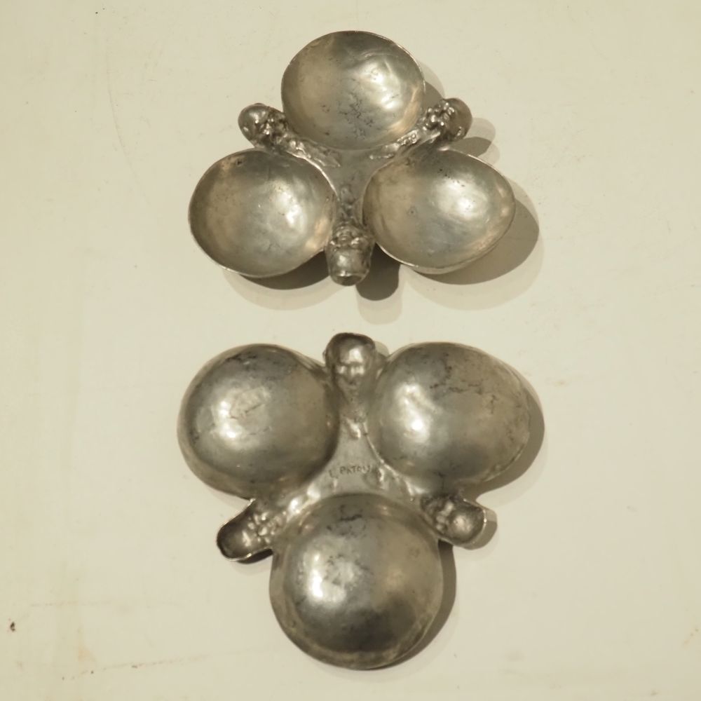 Ernest Patris (1909-1981) : Paire de mendiants à 3 raviers vers 1960, étain, signé sous la base, diam: 24 cm