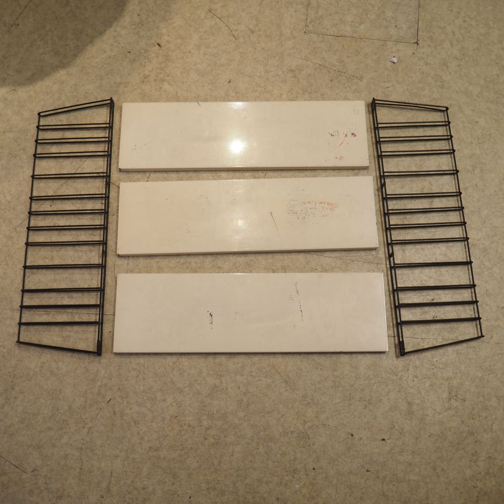 Tomado : Etagère/bibliothèque, 2 montants en fils d’aicer laqué noir, 3 plaques laquées blanches, dim: