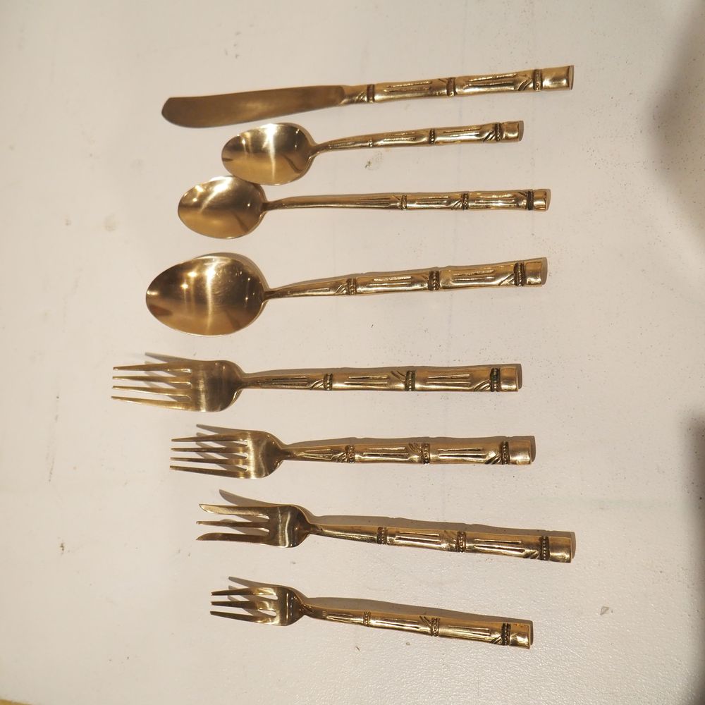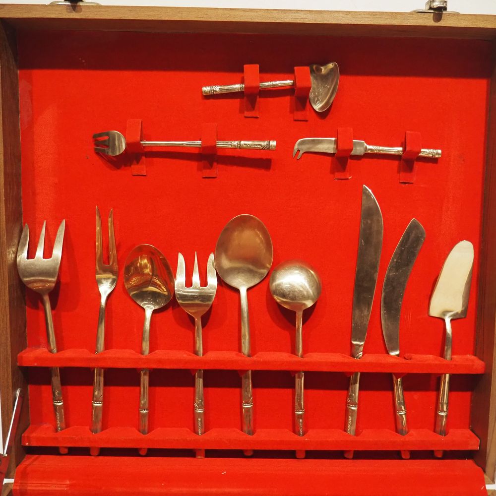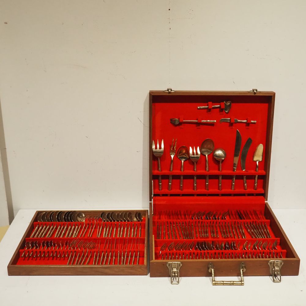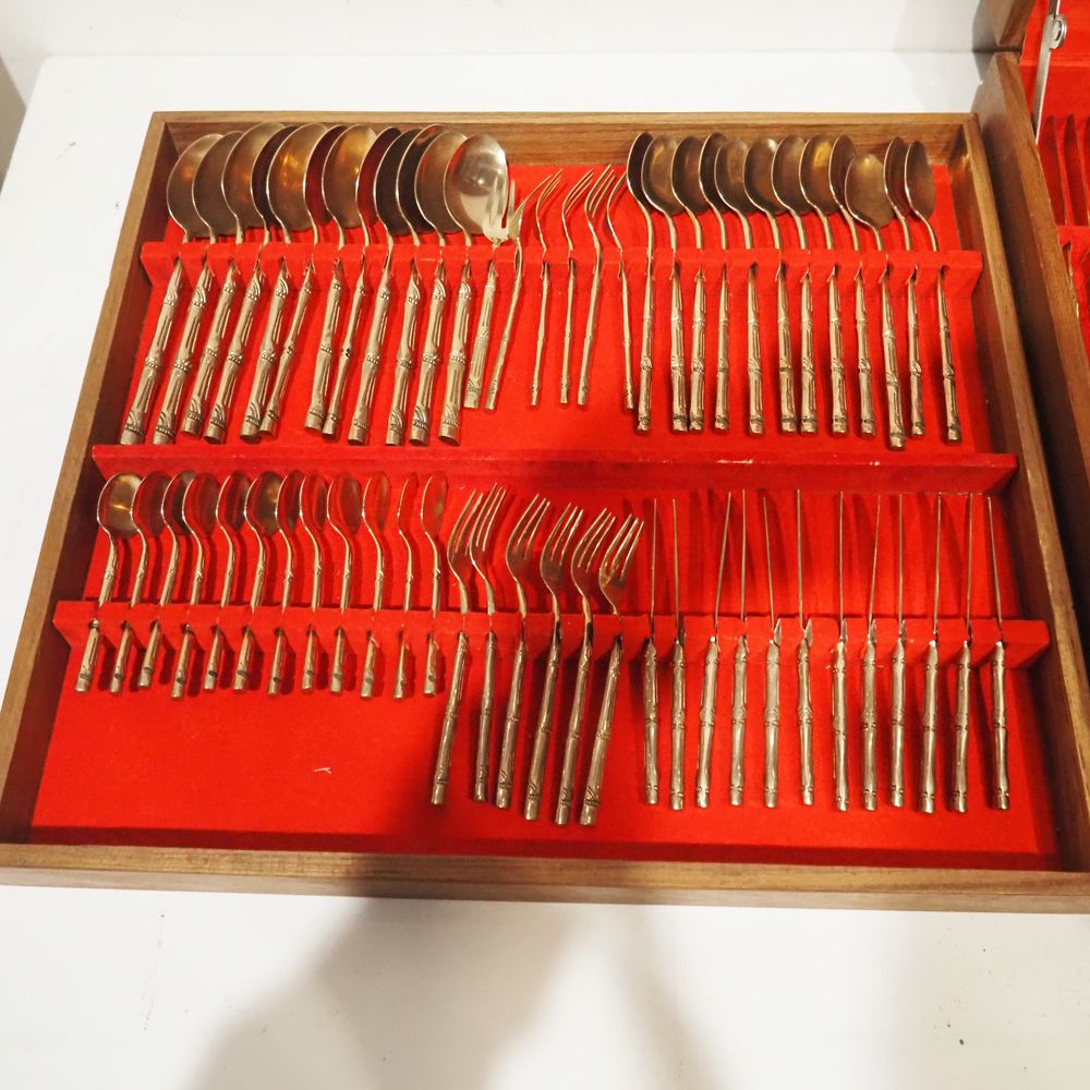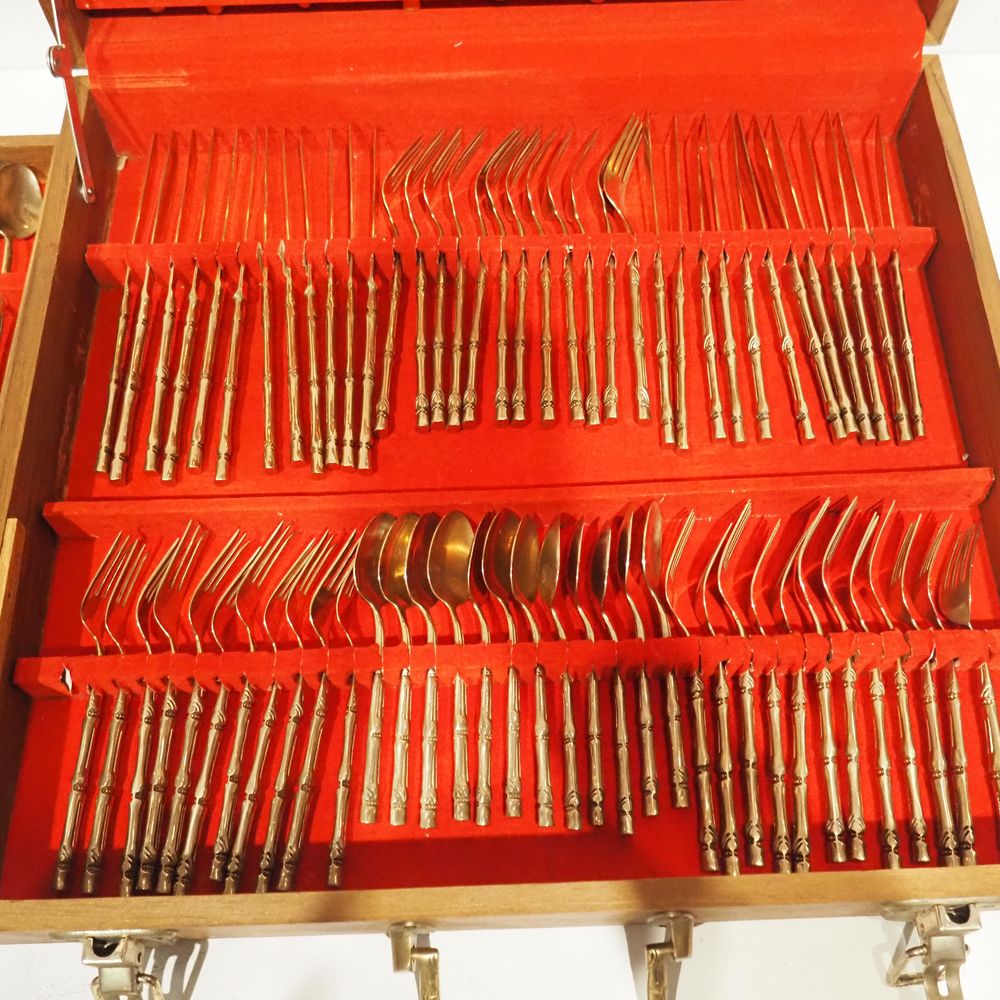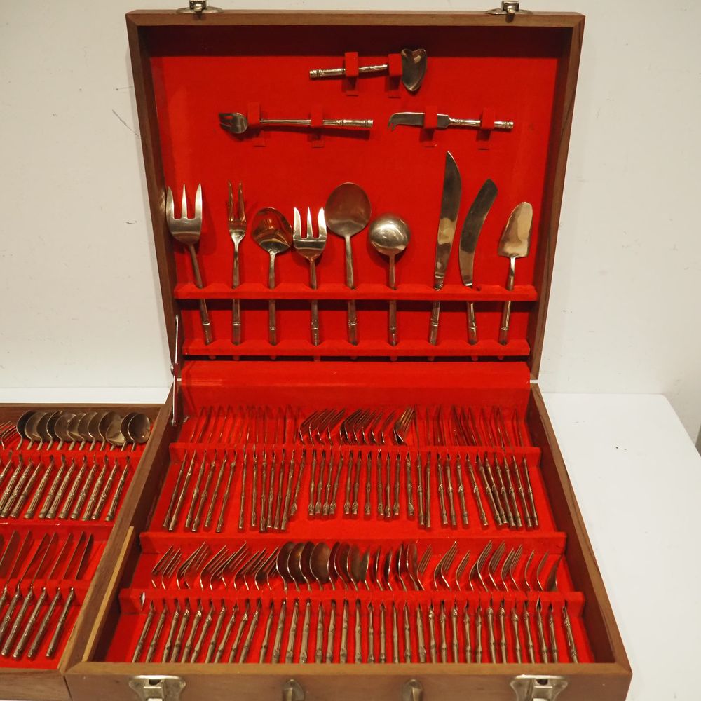 Ménagère de 144 couverts vers 1980 : Nickelbronze avec coffret, manche imitant le bambou