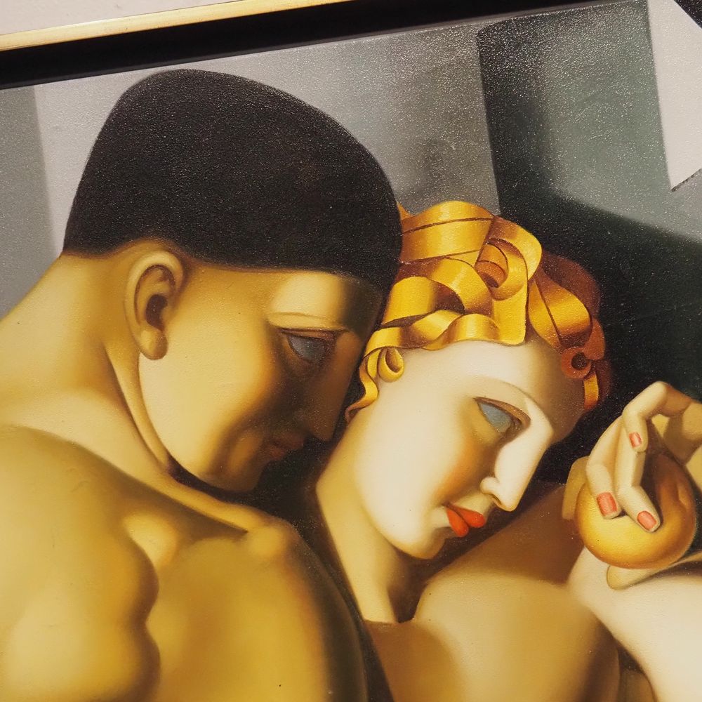 Copie d’après l’œuvre de Tamara De Lempicka : Huile sur toile vers 2000, Eve et Adam, dim: 120 x 90 cm