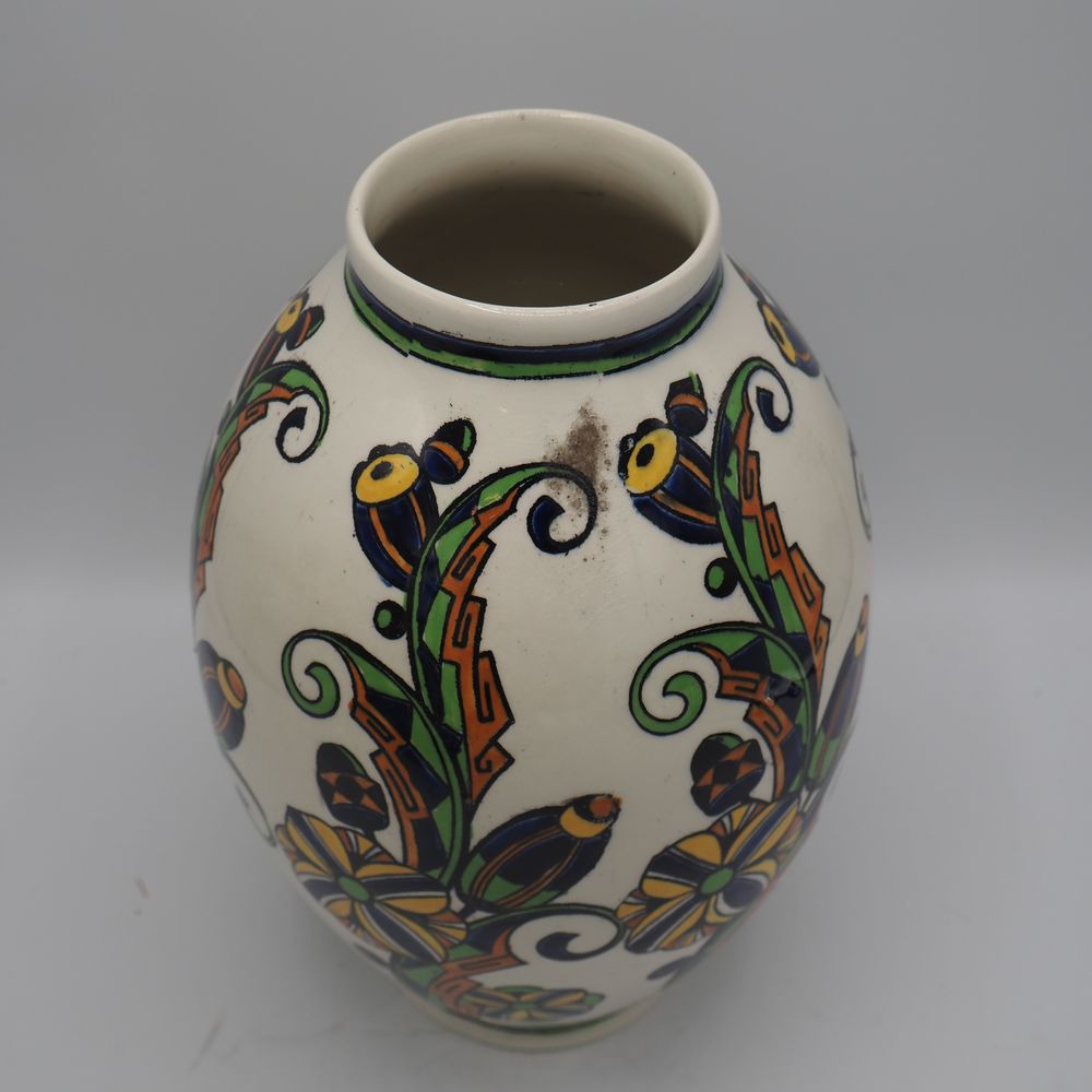 Charles Catteau (1880-1966) / Boch La Louvière : Vase Art-Déco, forme ovoide 899, céramique émaillée, décor de baies stylisées D1081, H: 27, diam: 18 cm