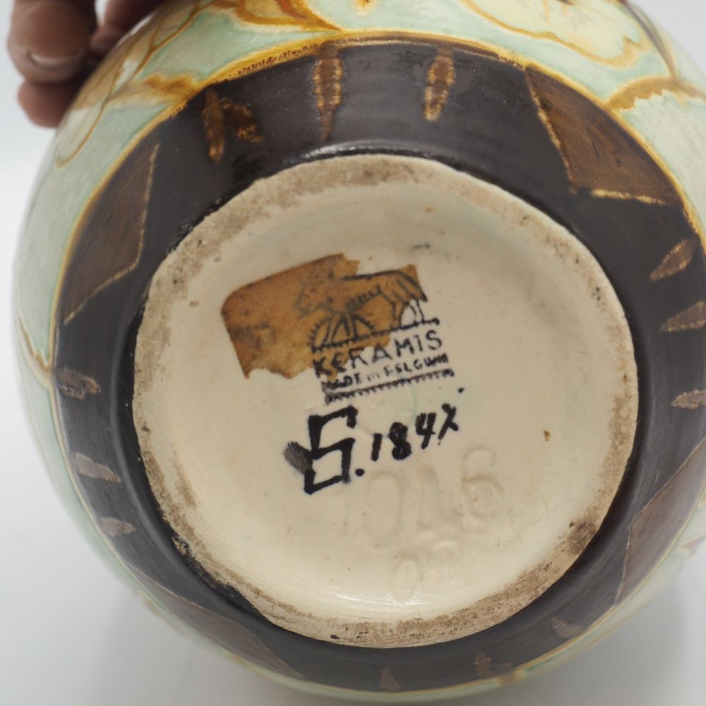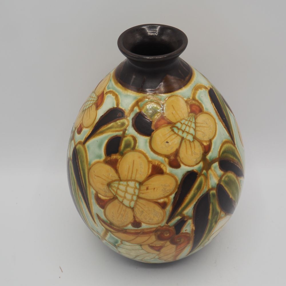 Charles Catteau (1880-1966) / Keramis : Vase ovoide forme 1046, céramique émaillée, décor floral D1847 avec frise, cachet à la louve, H: 22,5, diam: 16 cm