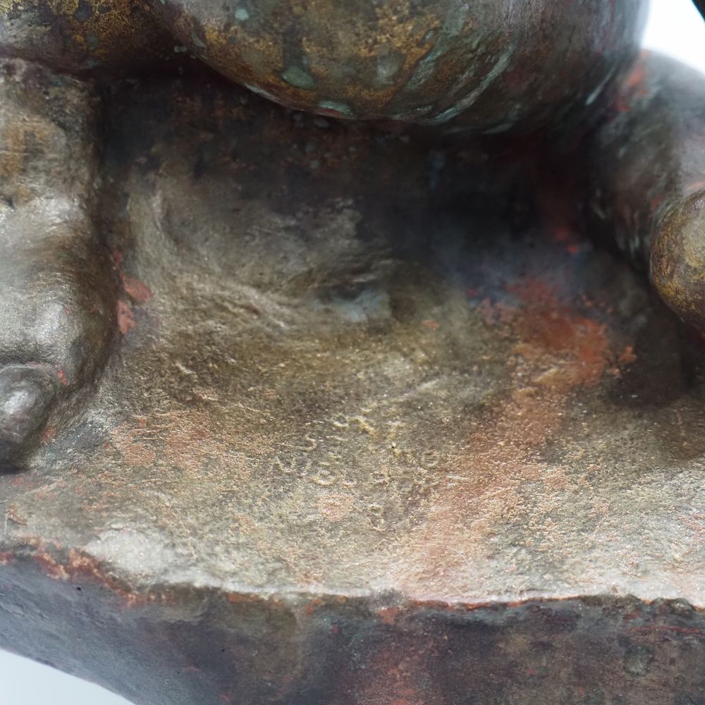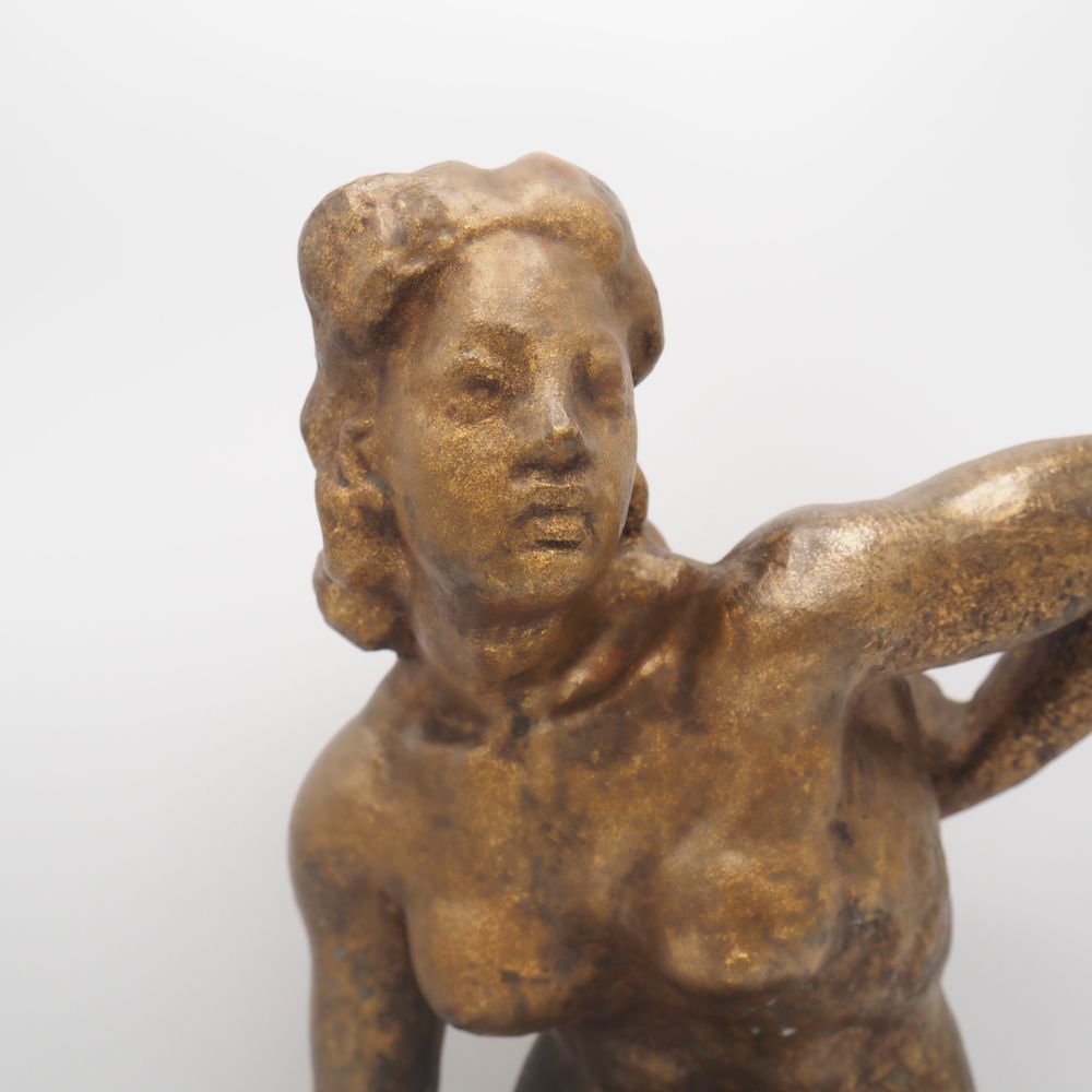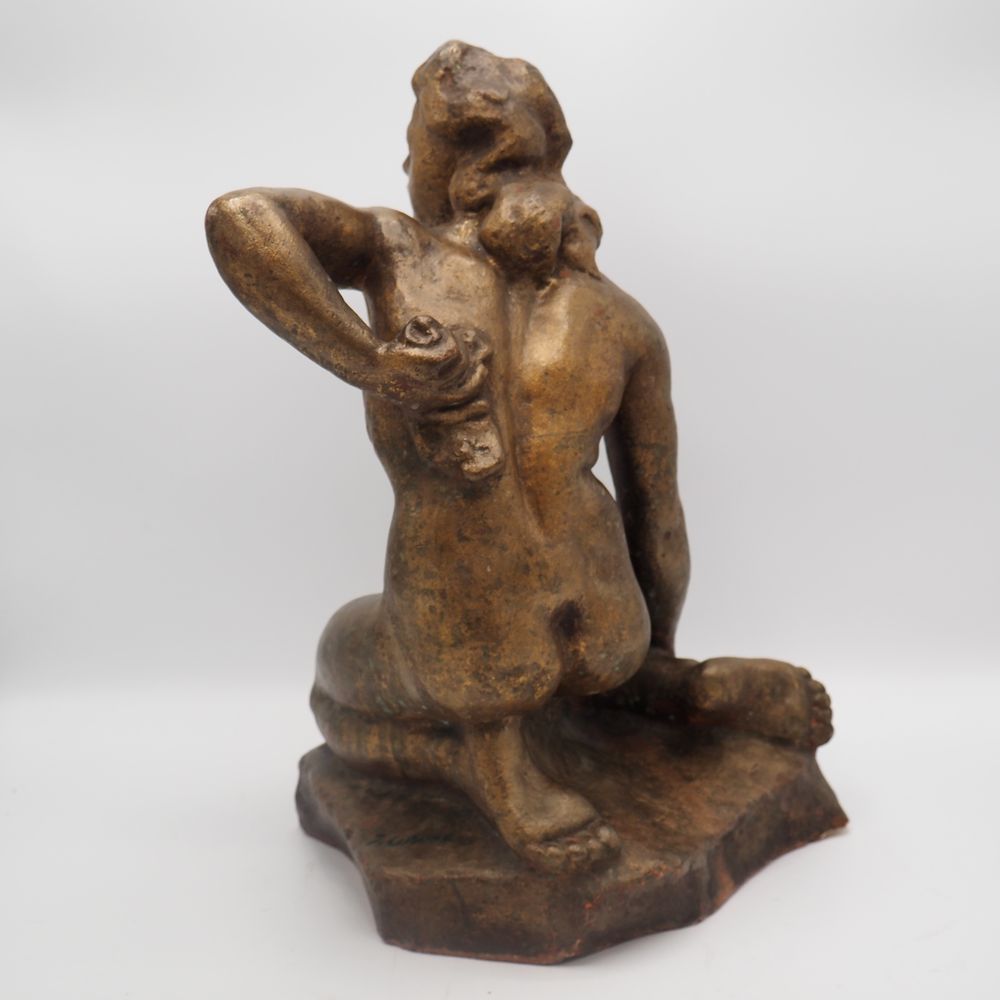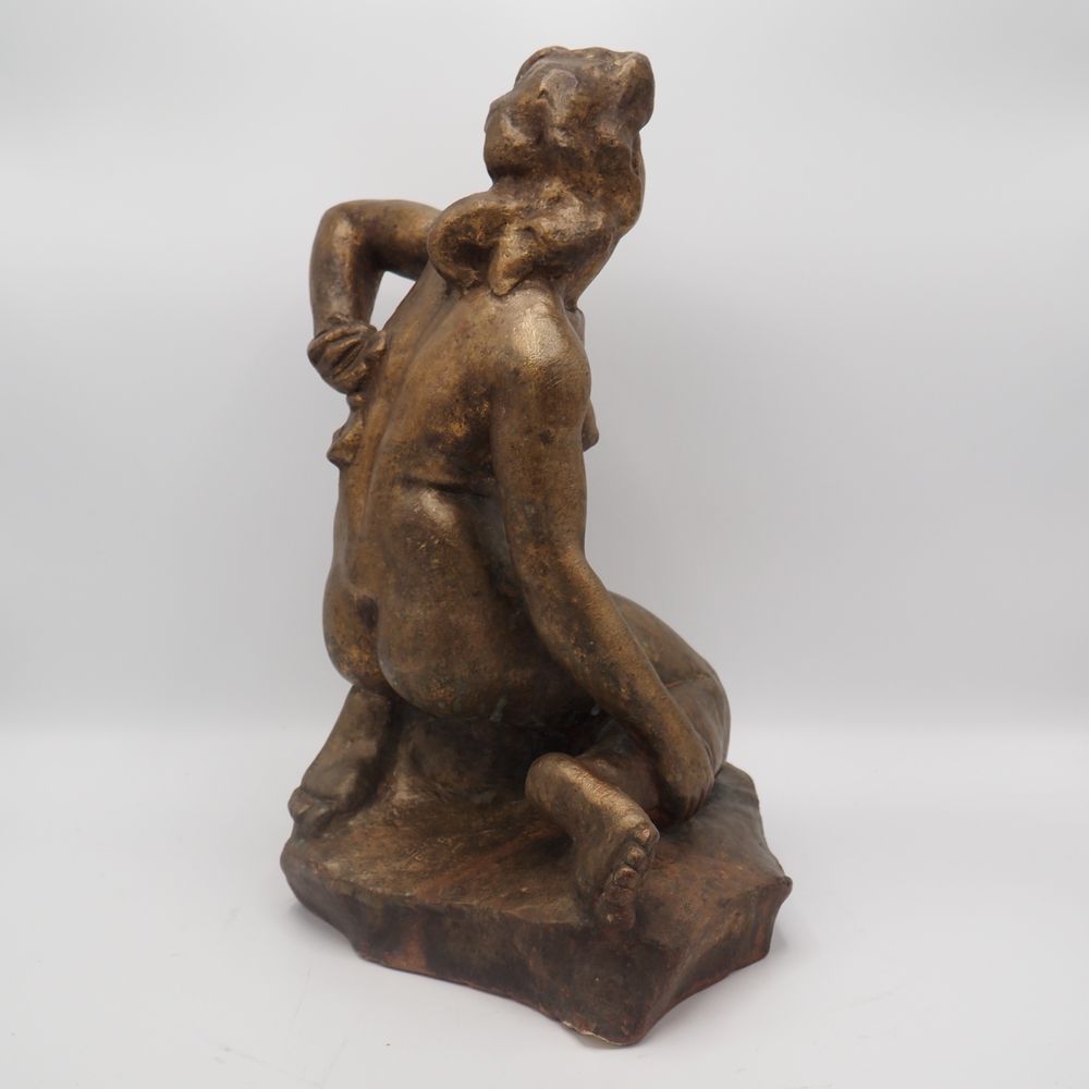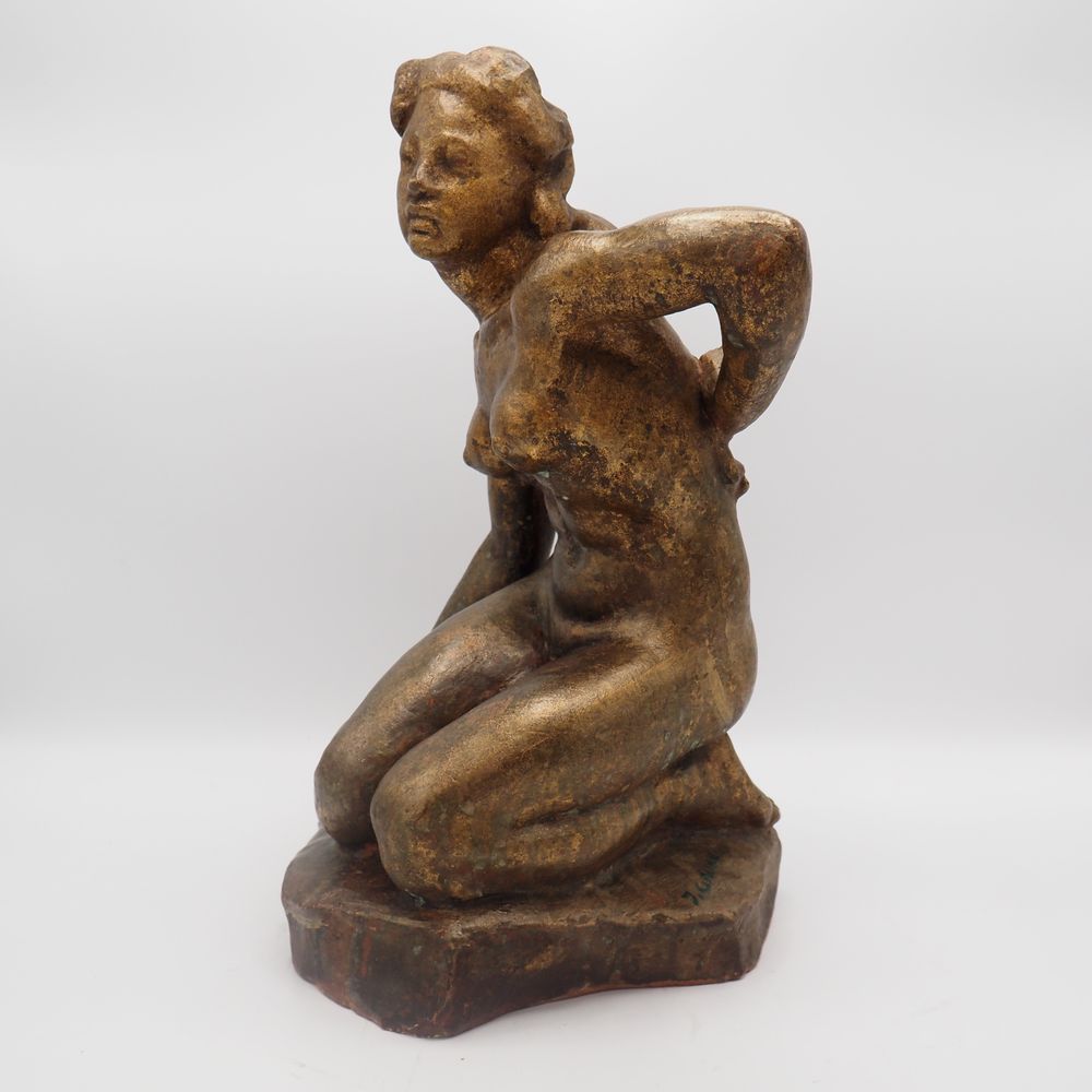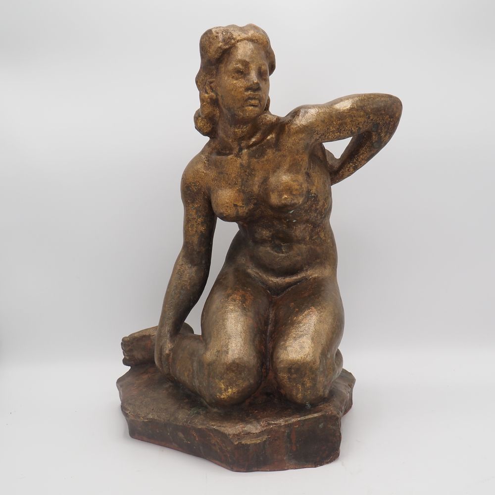 Josef Arnost Gause (1910-1988) : Sculpture, plâtre à patine dorée, figurant un nu de dame à genou, signée en bas à gauche, H: 39, L: 33, P: 24 cm