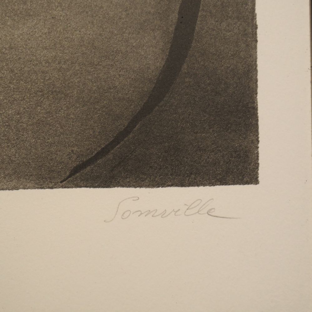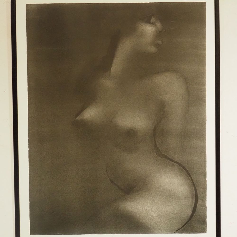 Roger Somville (1923-2014) : Lithographie noir et blanc, nu de dame, titrée « Nue », signée au crayon en bas à droite, numérotée 46/50, encadrée sous verre, dim image: 65 x 50 cm