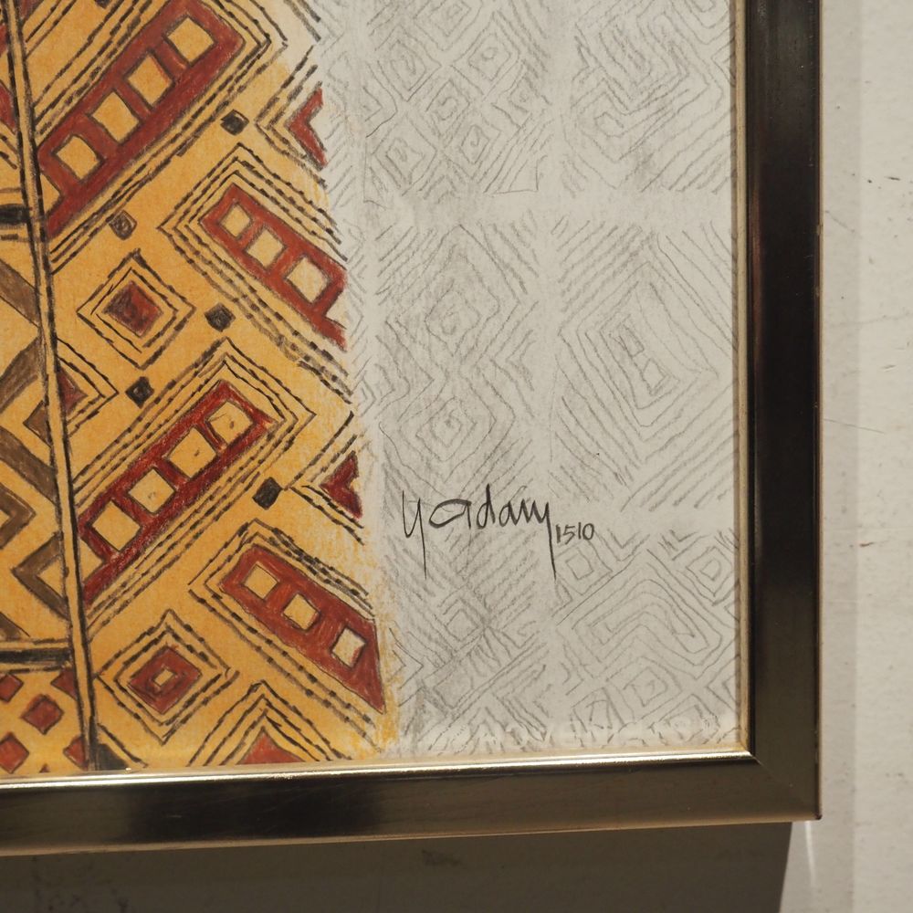 Yvon Adam : Technique mixte, dessin, crayons et pastel, « La rousse et les Robert », signé en bas à droite, encadré sous verre, dim: 110 x 73 cm