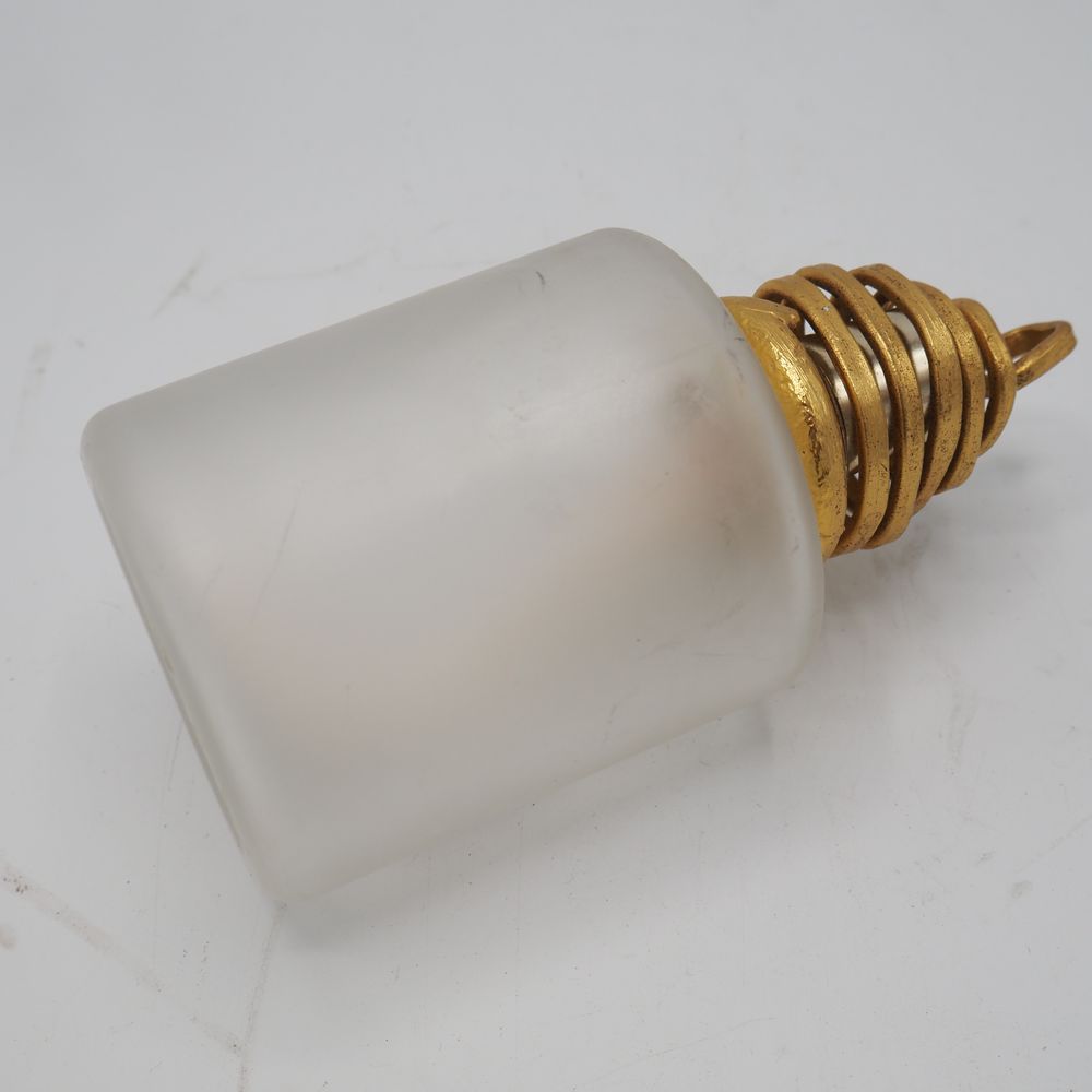 Georges Mathias attribué : Lampe berger, flacon en verre et finition en bronze doré, H: 16,5, diam: 8 cm