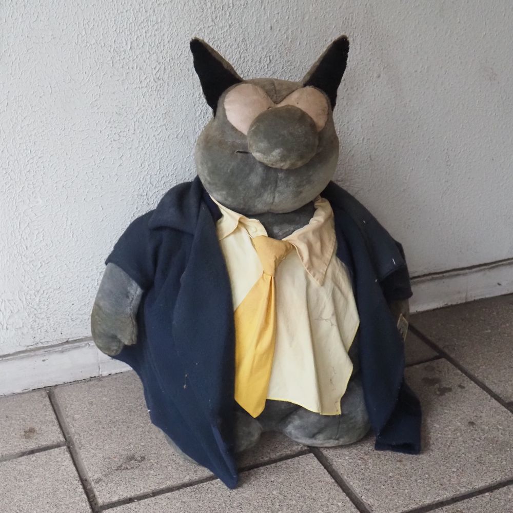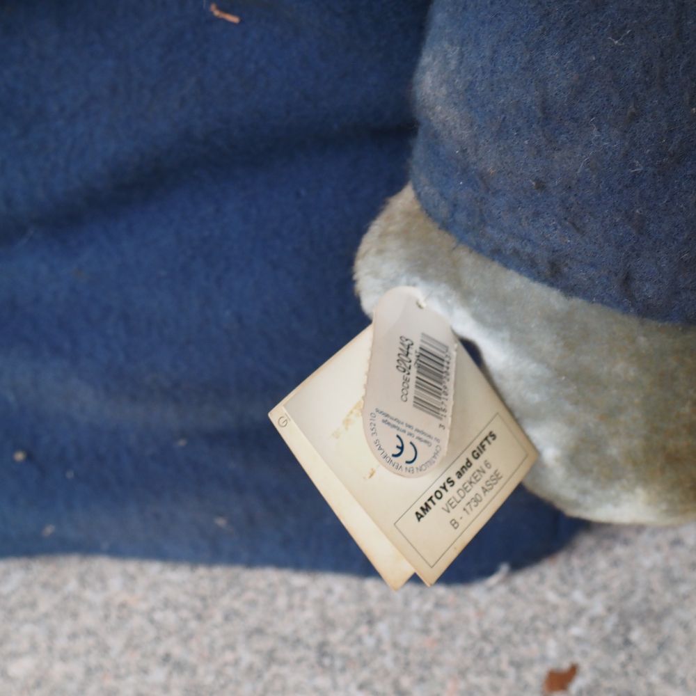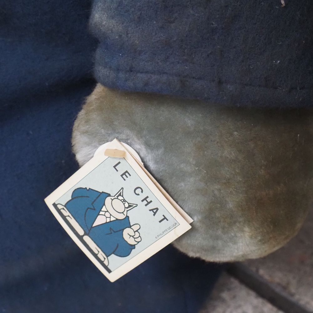 Philippe Geluck / Luche – Prince – France : Peluche d’exposition grand format, Le Chat, avec son étiquette, neuf mais poussiéreux, dim H : 73, L : 73 P: 45 cm