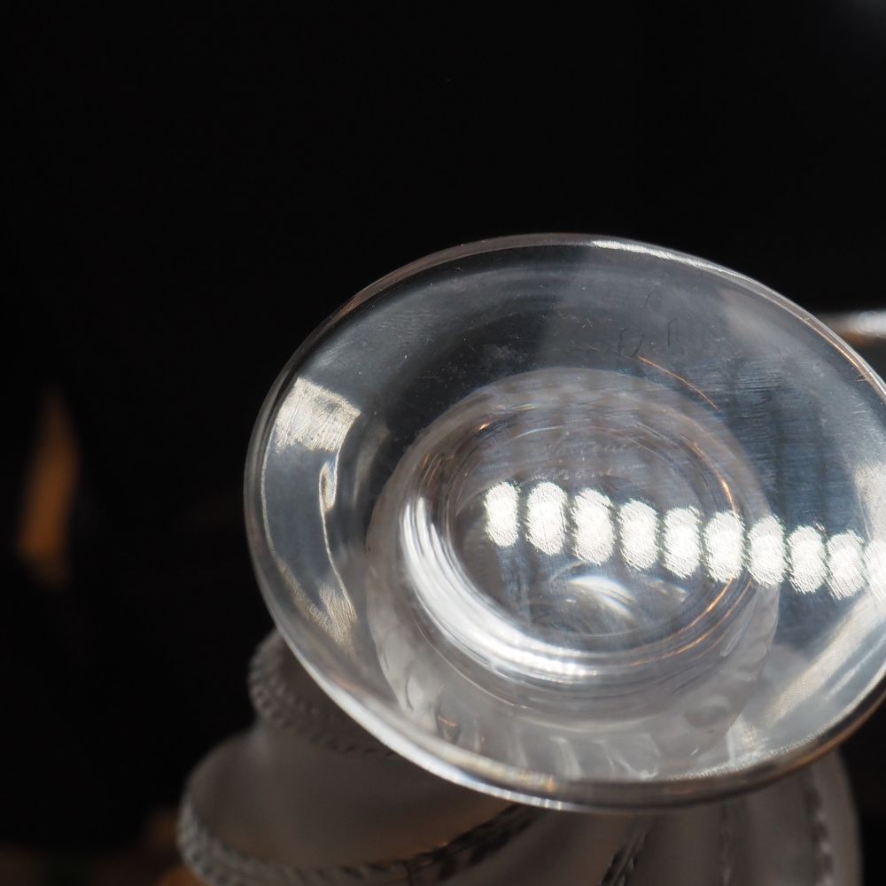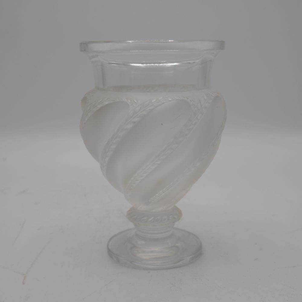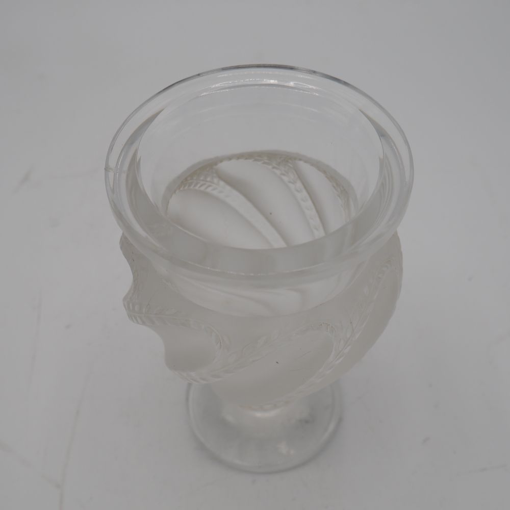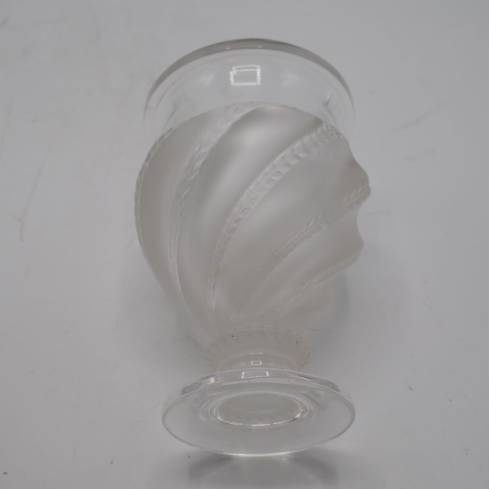 Lalique France : Vase en forme de calice, cristal clair et satiné, décor d’épis de blé, pied disque (retaillé), H: 15, diam: 10 cm