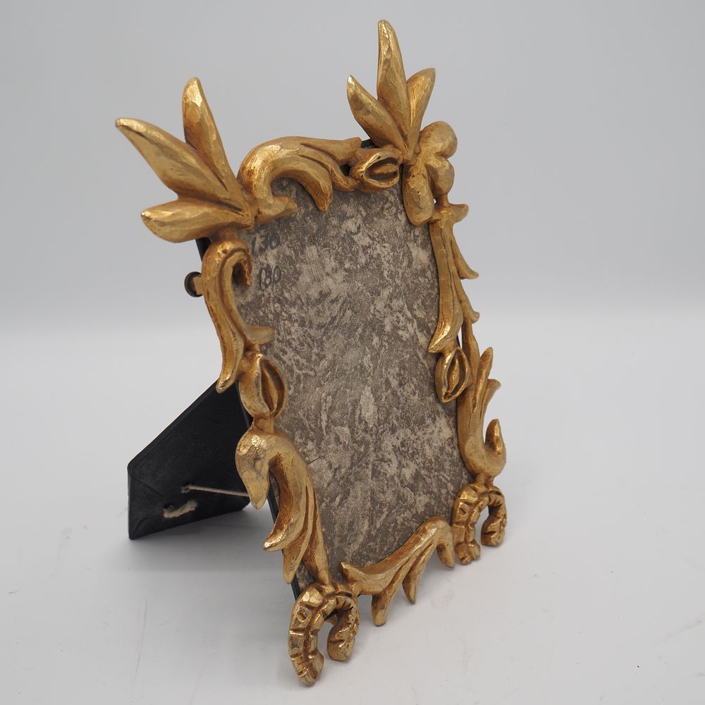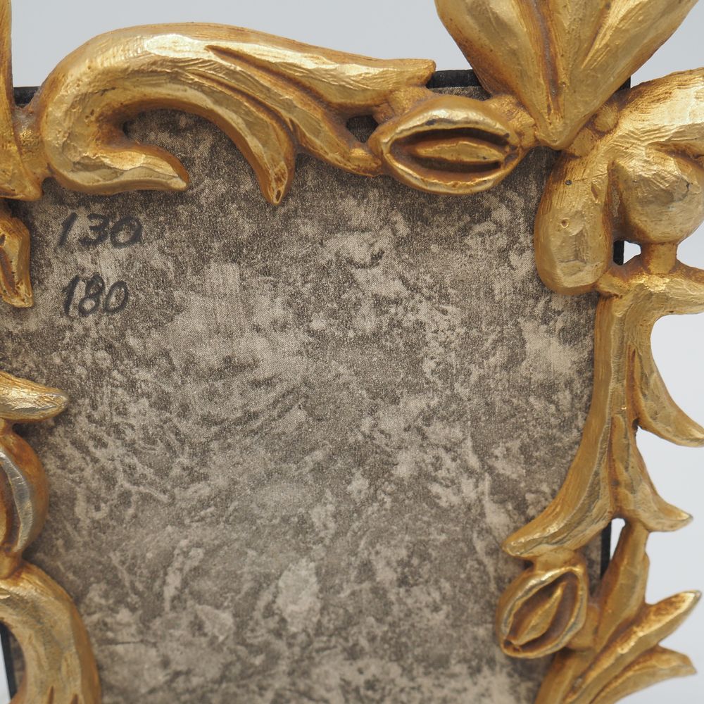 Georges Mathias / Fonderie Fondica : Encadrement photo vers 1980, bronze massif doré, motif d’empreinte de feuillage, dim: 24,5 x 18 cm