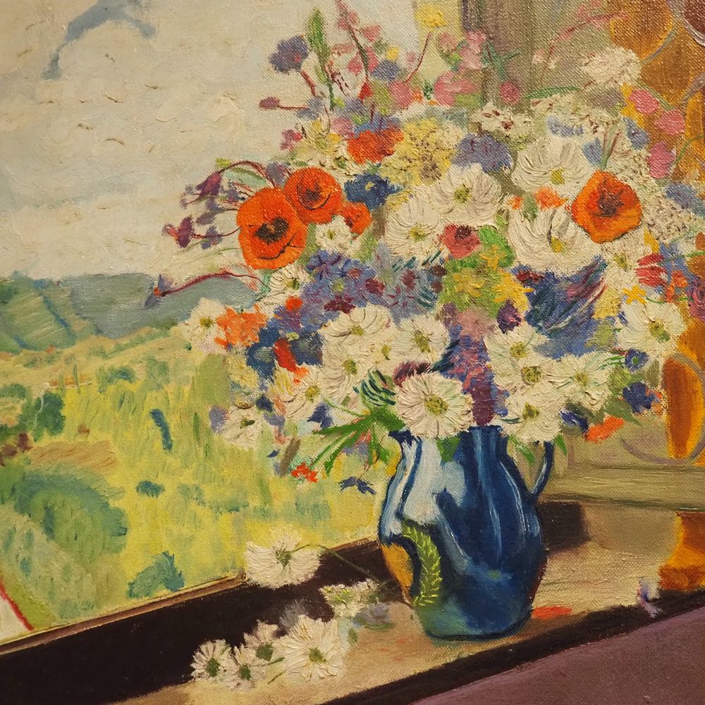 Huile sur toile vers 1960, nature morte aux fleurs, dim: 40 x 50 cm