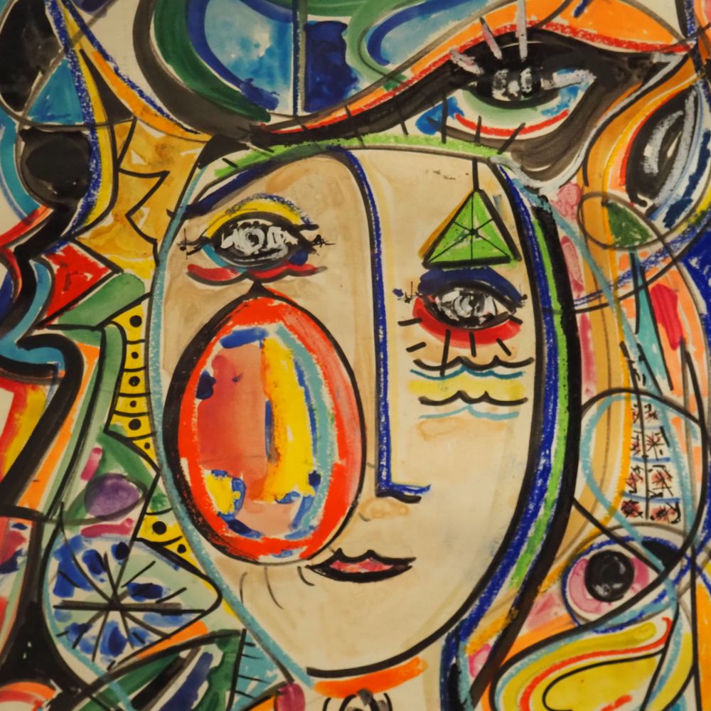 Milo Vojic 1923-2004 : Technique mixte, huile, pastel et aquarelle sur papier, portrait de dame, signée en haut à gauche, dim: 61 x 50 cm