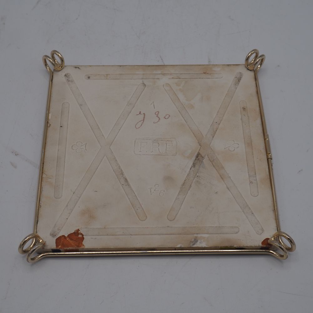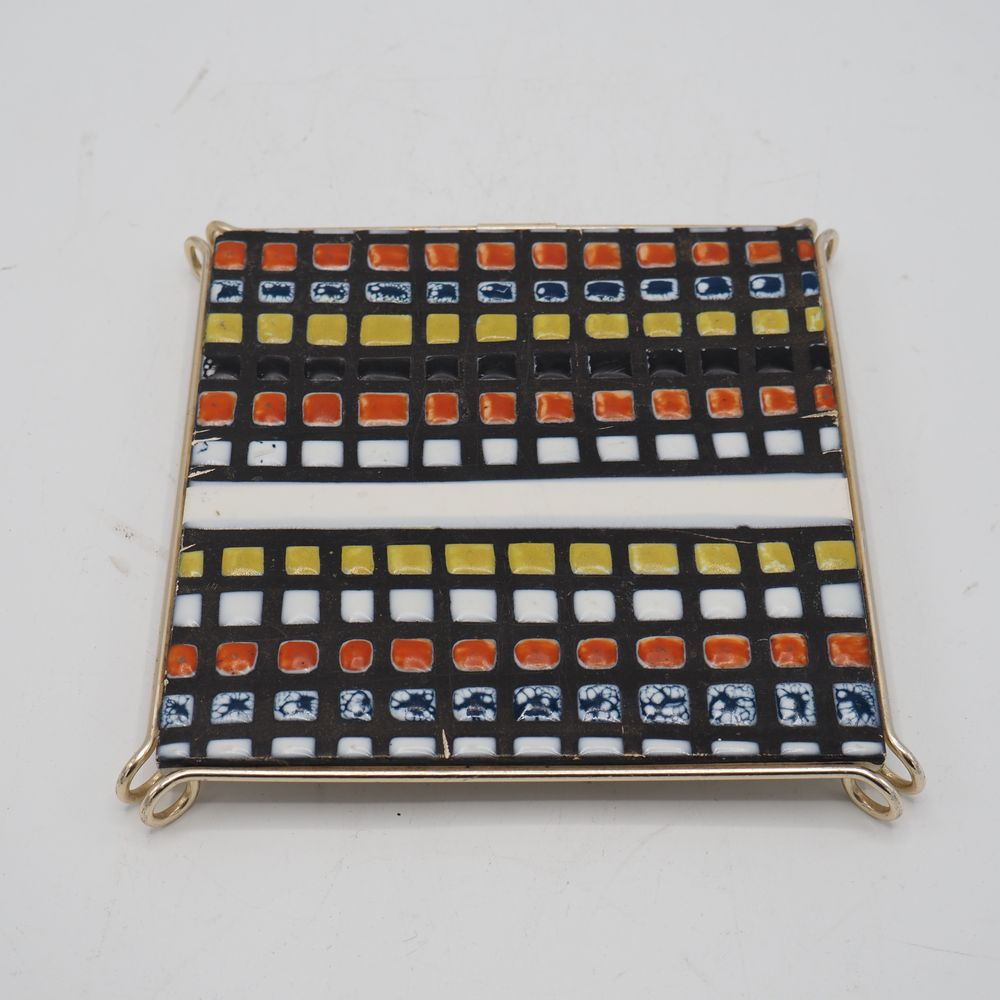 Roger Capron 1922-2006 / Vallauris : Sous-plat, modèle pyjama, faience stannifere émaillée de couleurs rouge, bleu, jaune et blanc, dim: 15 x 15 cm