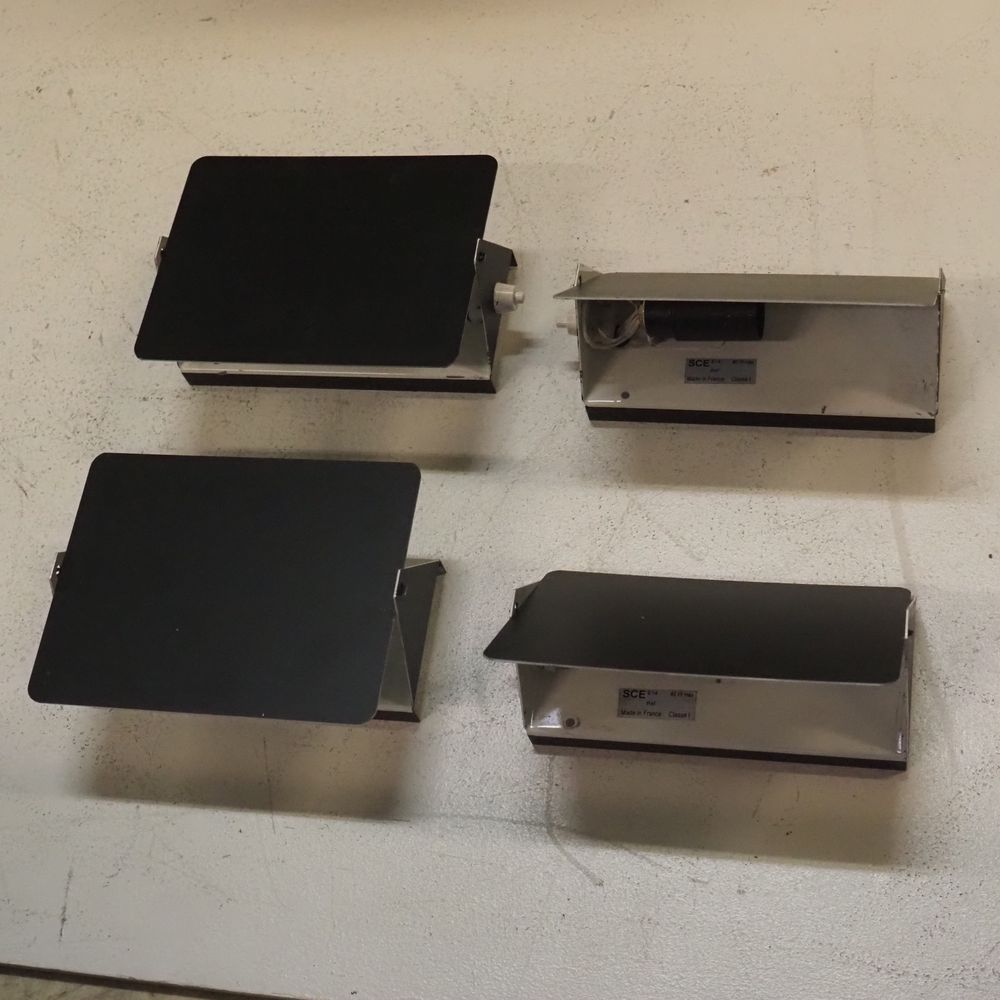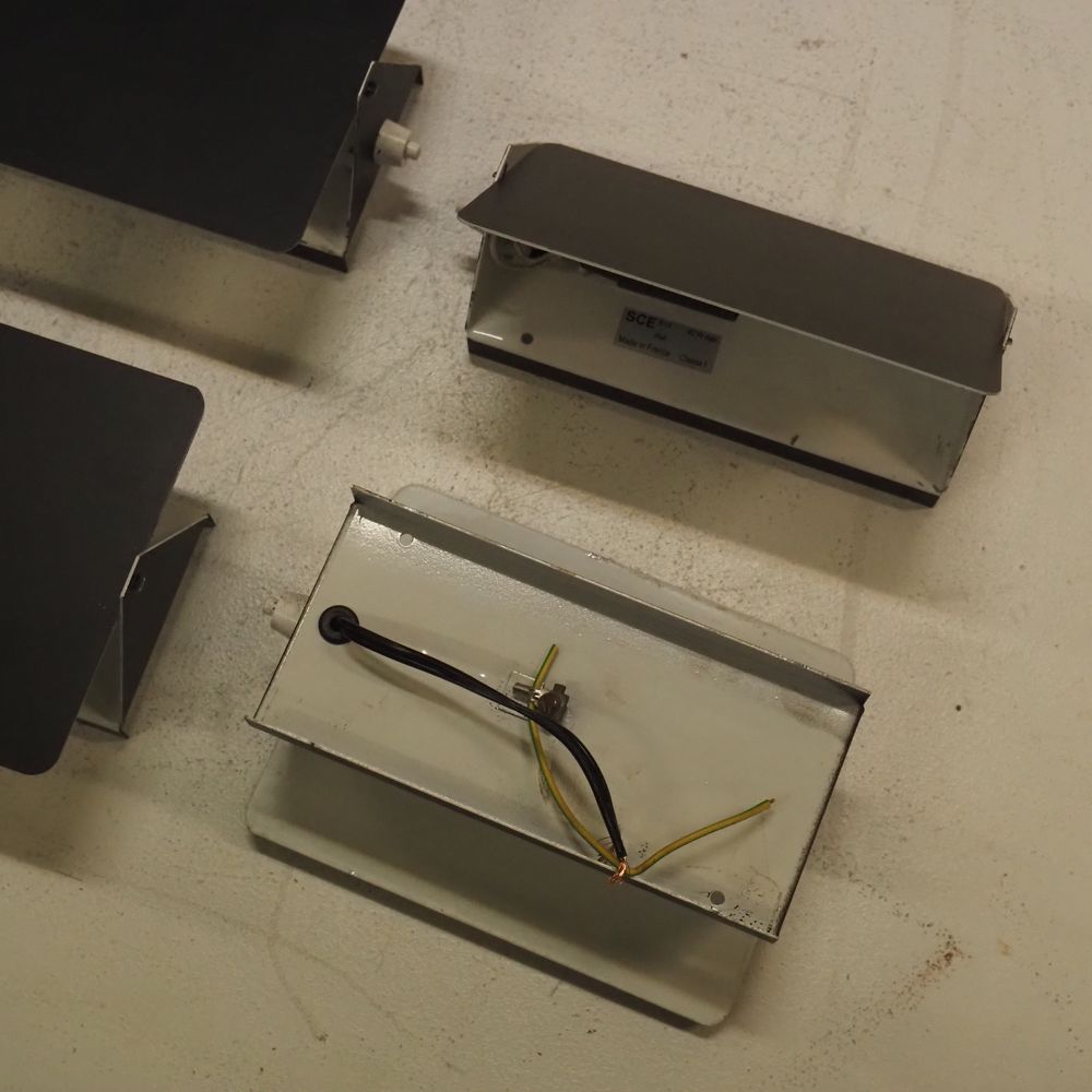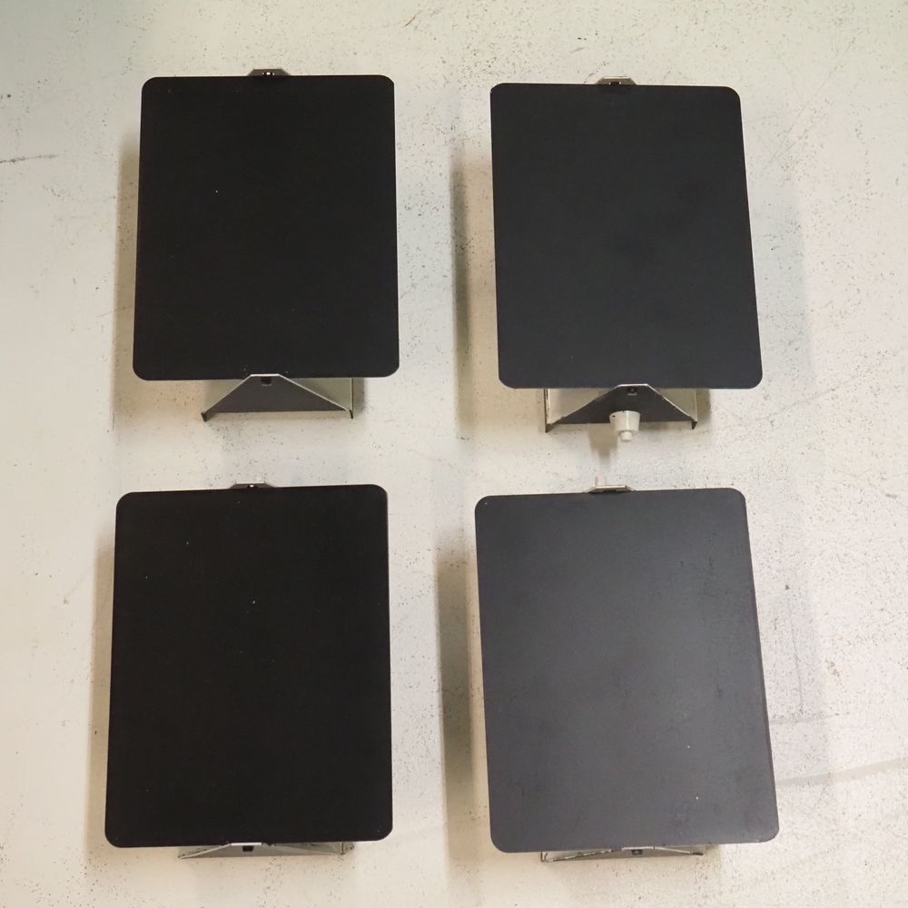 Charlotte Perriand (1903-1999) / la station Les Arcs : Lot de 4 appliques, modèle CP-1, année 1963, métal laqué noir, très bon état d’origine, H: 16, L: 12,5, P: 7 cm
