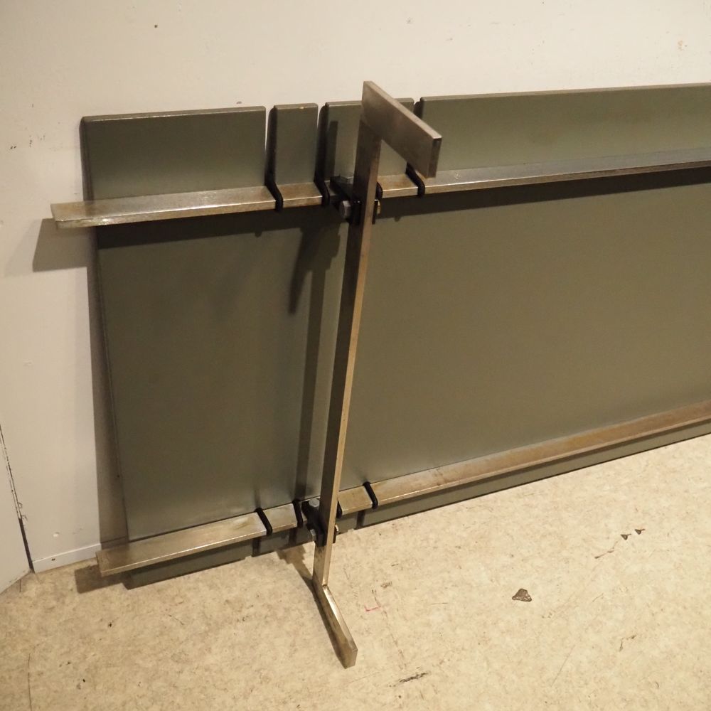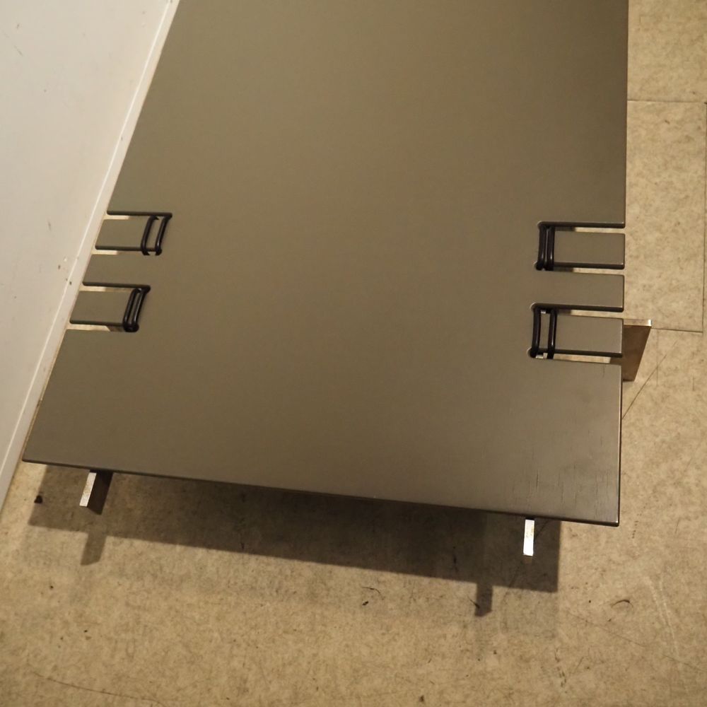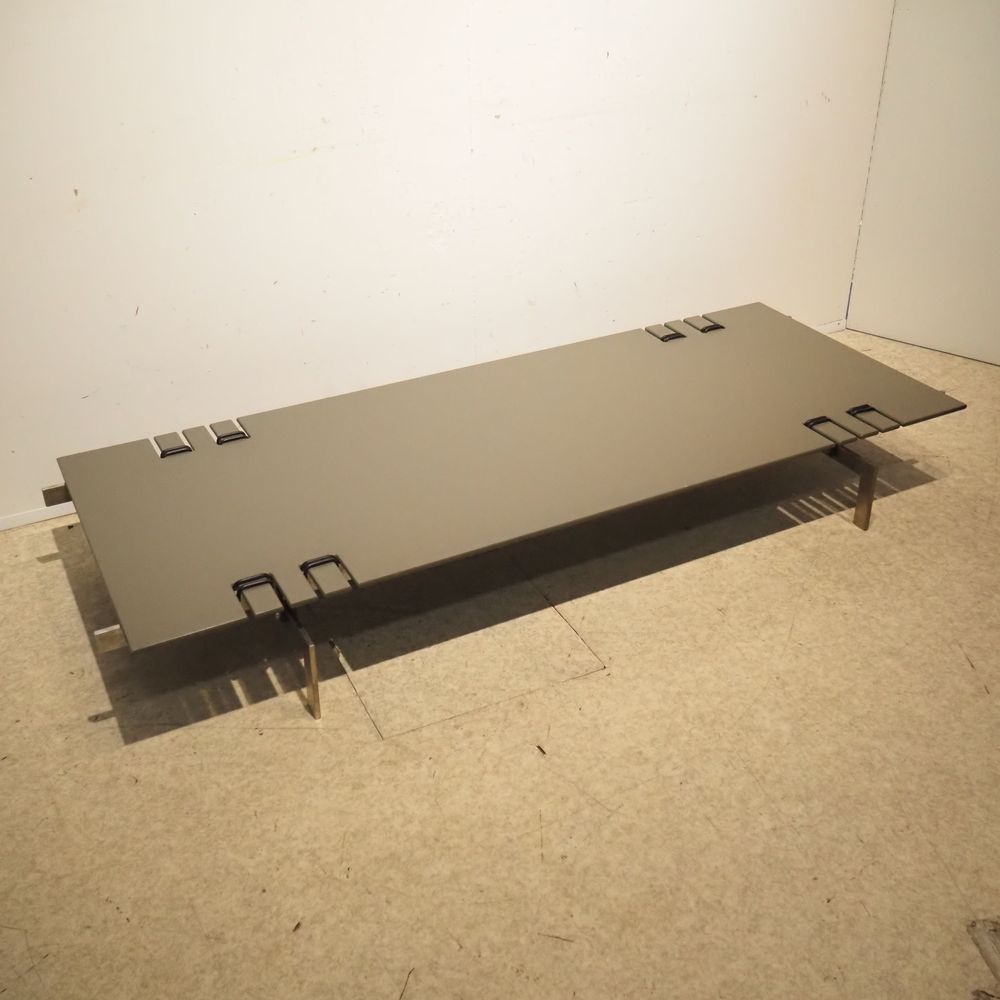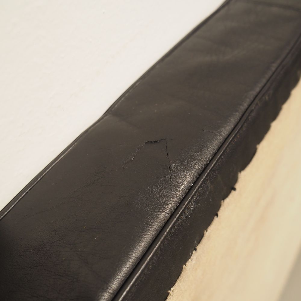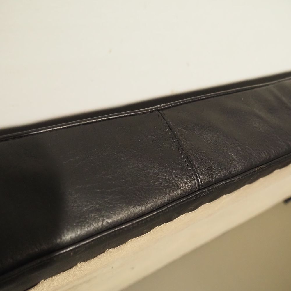 Poul Kjaerholm (1929-1980) Kold Christiansen : Lit de repos, modèle PK80, dessiné en 1957, matelas en mousse et crin garnis de croupon de cuir, posé sur une feuille de contreplaqué ajourée laqué gris sur une structure quadripode en acier plat nickelé, estampillé du logo Kold Christiansen, bon état général, H: 30, L: 190, P: 80 cm
