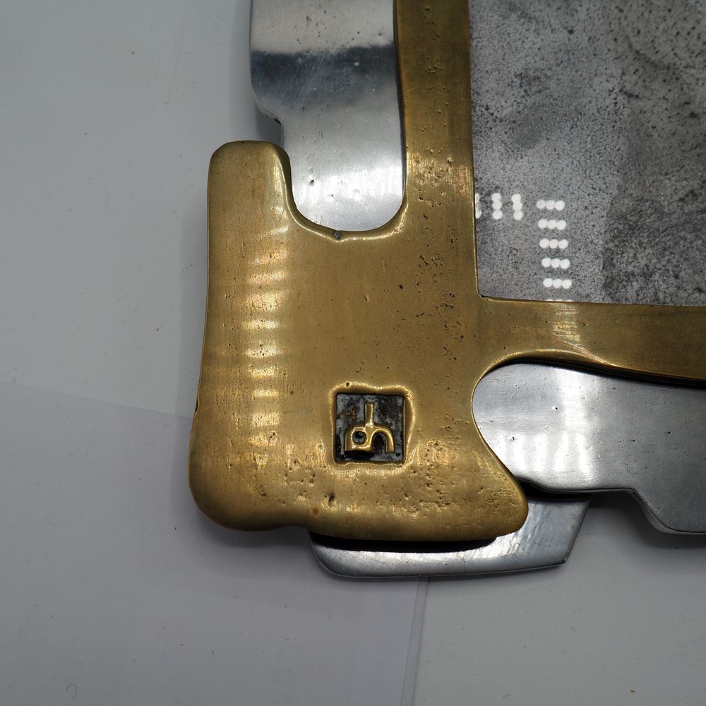 David Marshall 1942: Encadrement photo, fonte d’aluminium et laiton poli, monogrammée sous la base, dim : 30 x 27cm