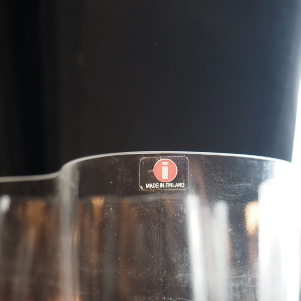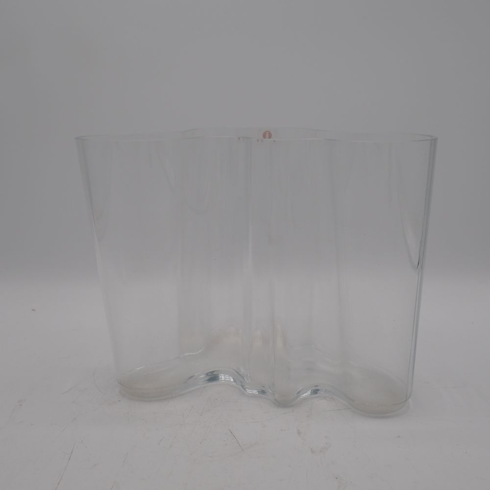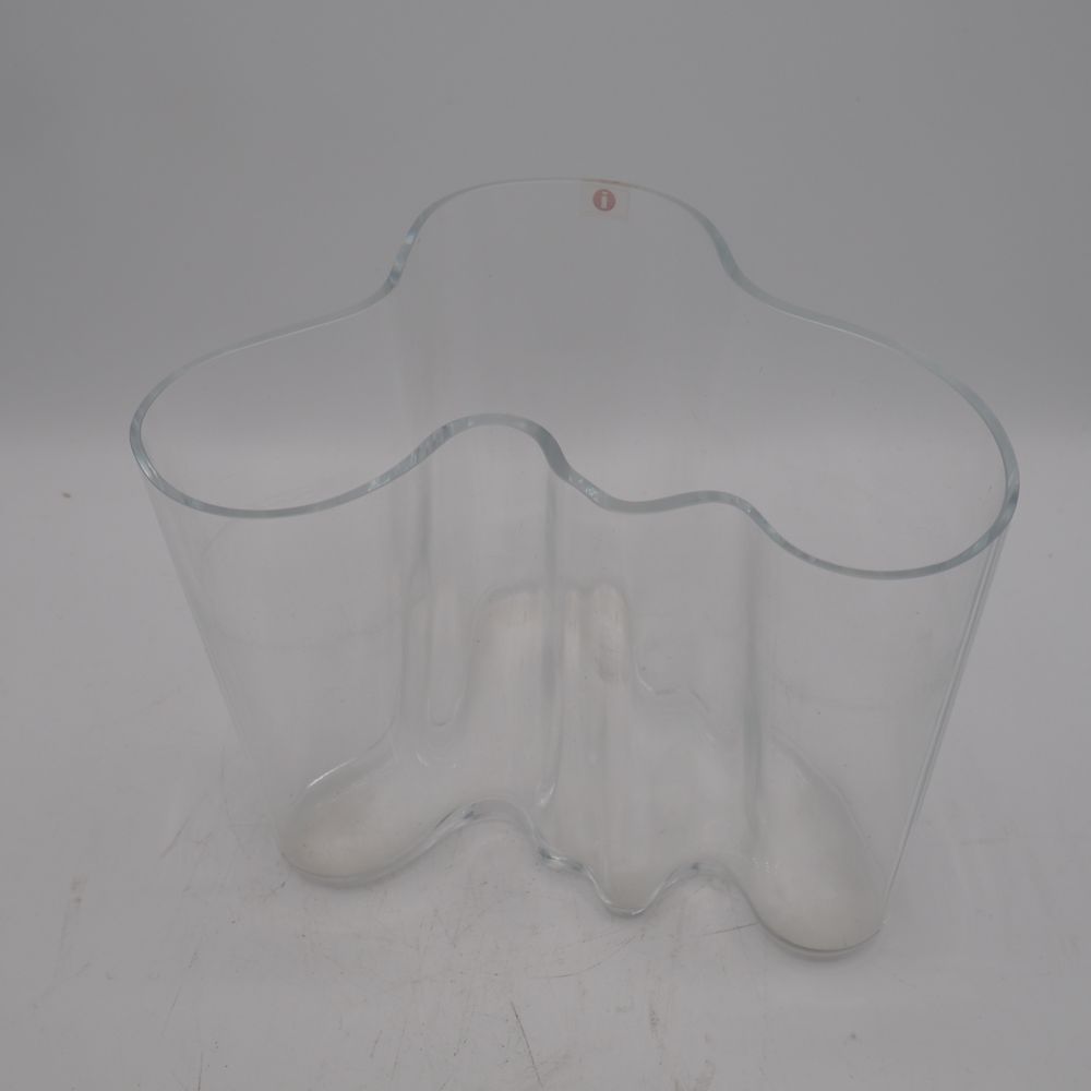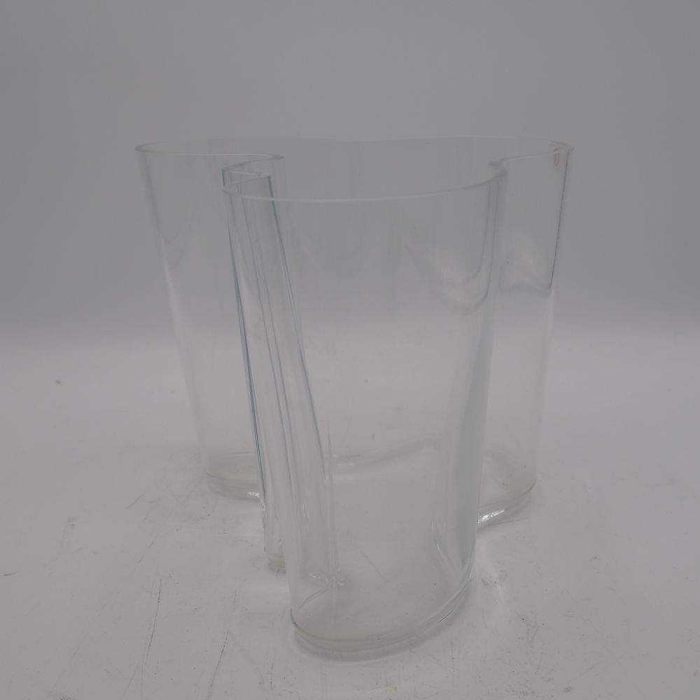 Alvar Aalto ( 1898-1976 ) / Littala Finland : Vase, verre clair soufflé moulé, modèle pantalon, signature à l’acide, H: 16, L: 20,5, P: 18 cm