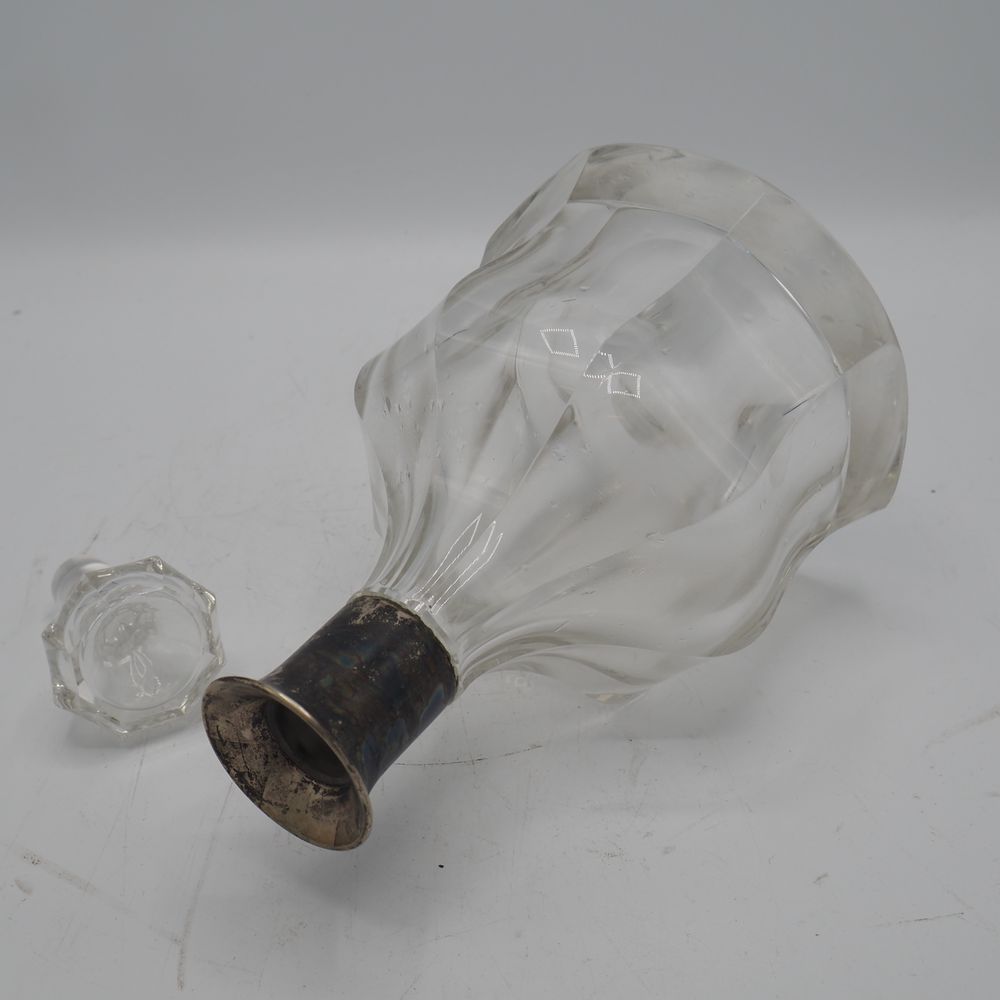 Carafon avec bouchon Art-Déco : Cristal clair taillé à 8 pans, en argent 800/1000e, H: