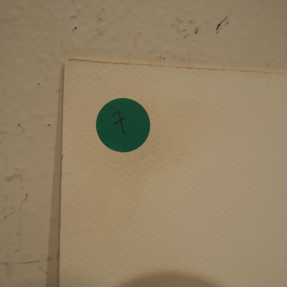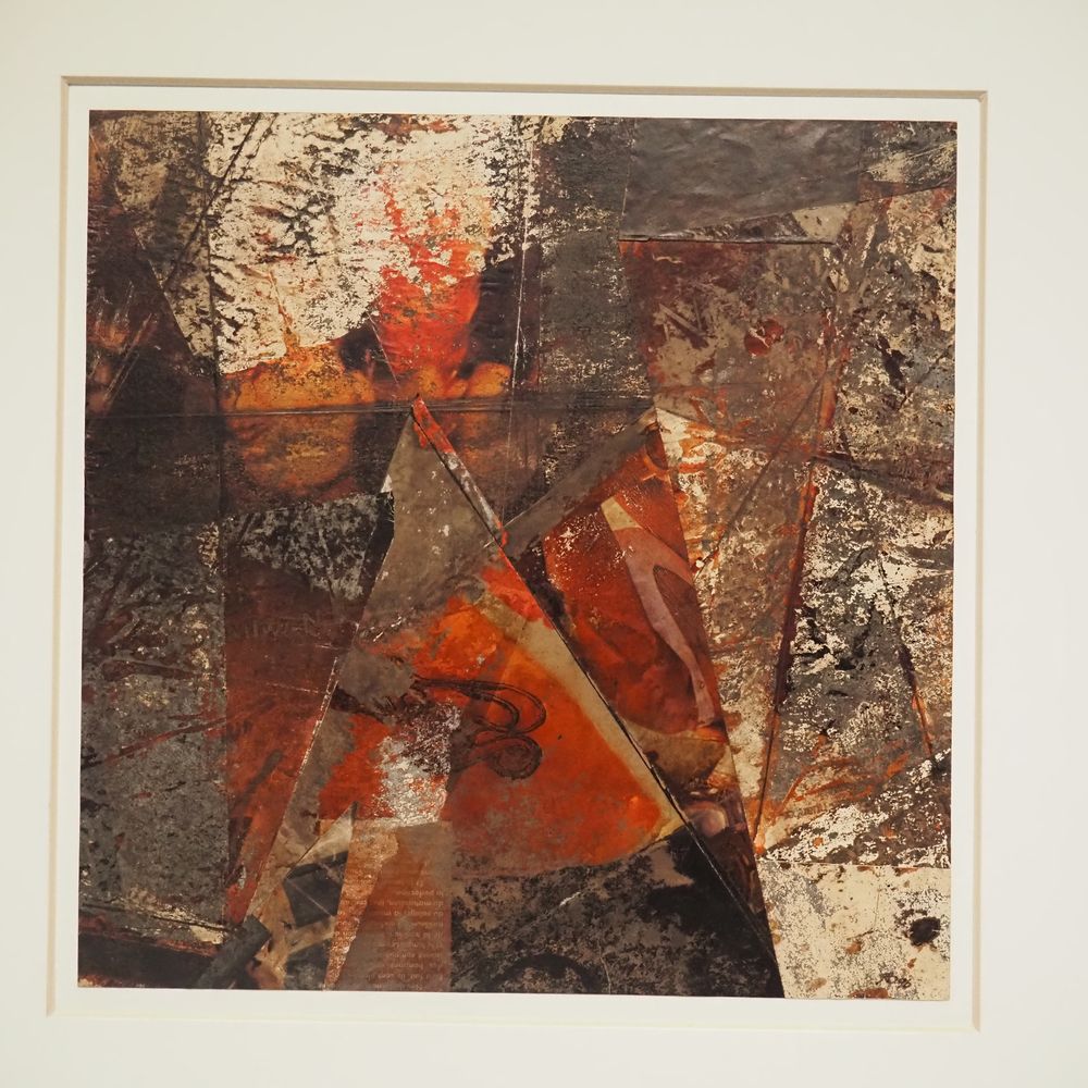 Roger Bogaert : Technique mixte, gouache et collage sur carton, signée à droite, datée (7), dim: 30 x 30 cm