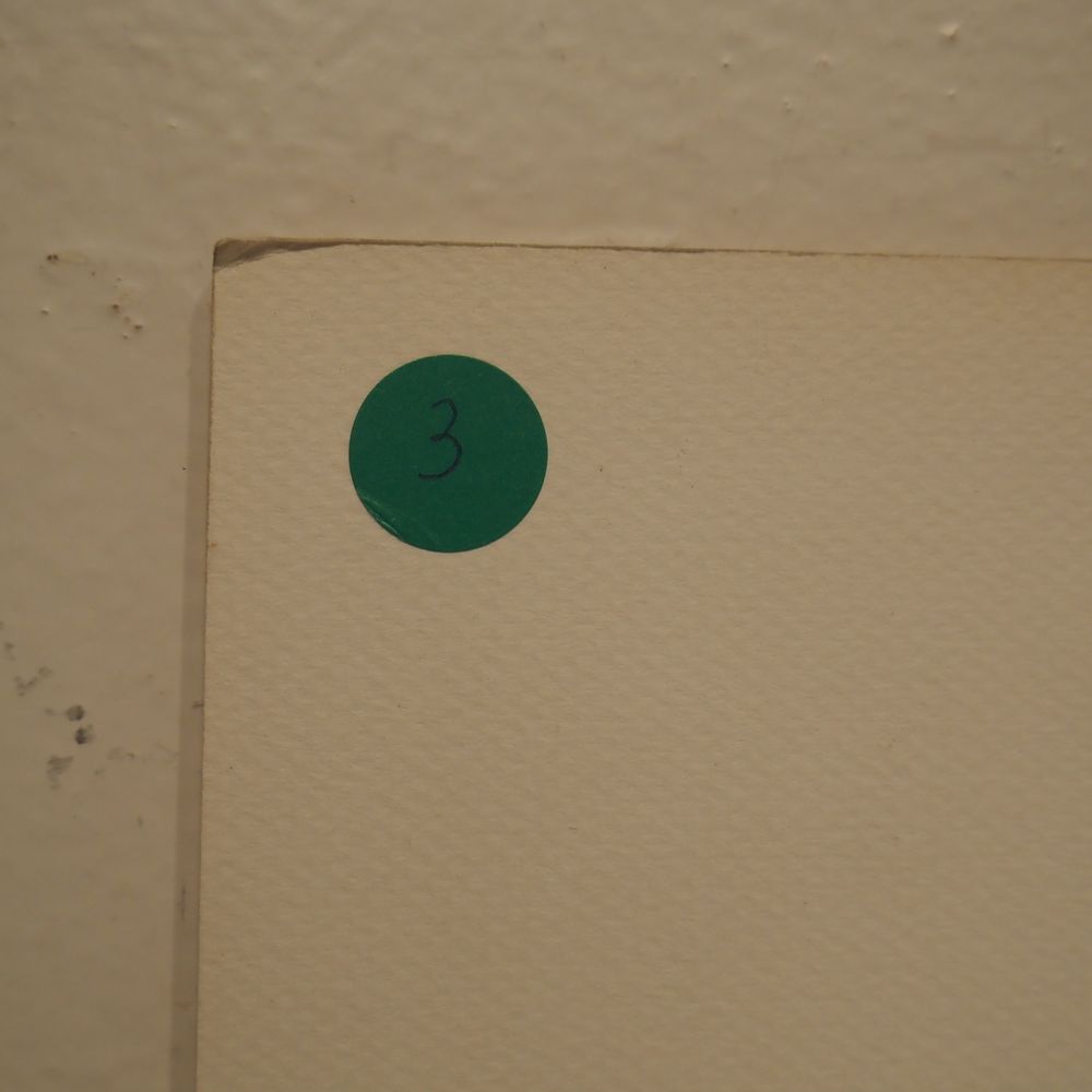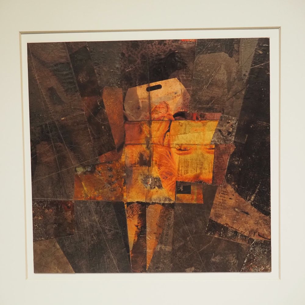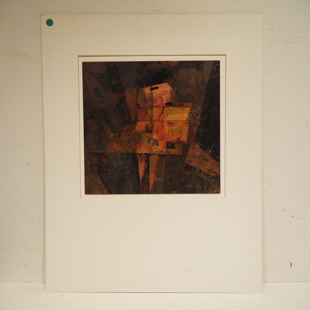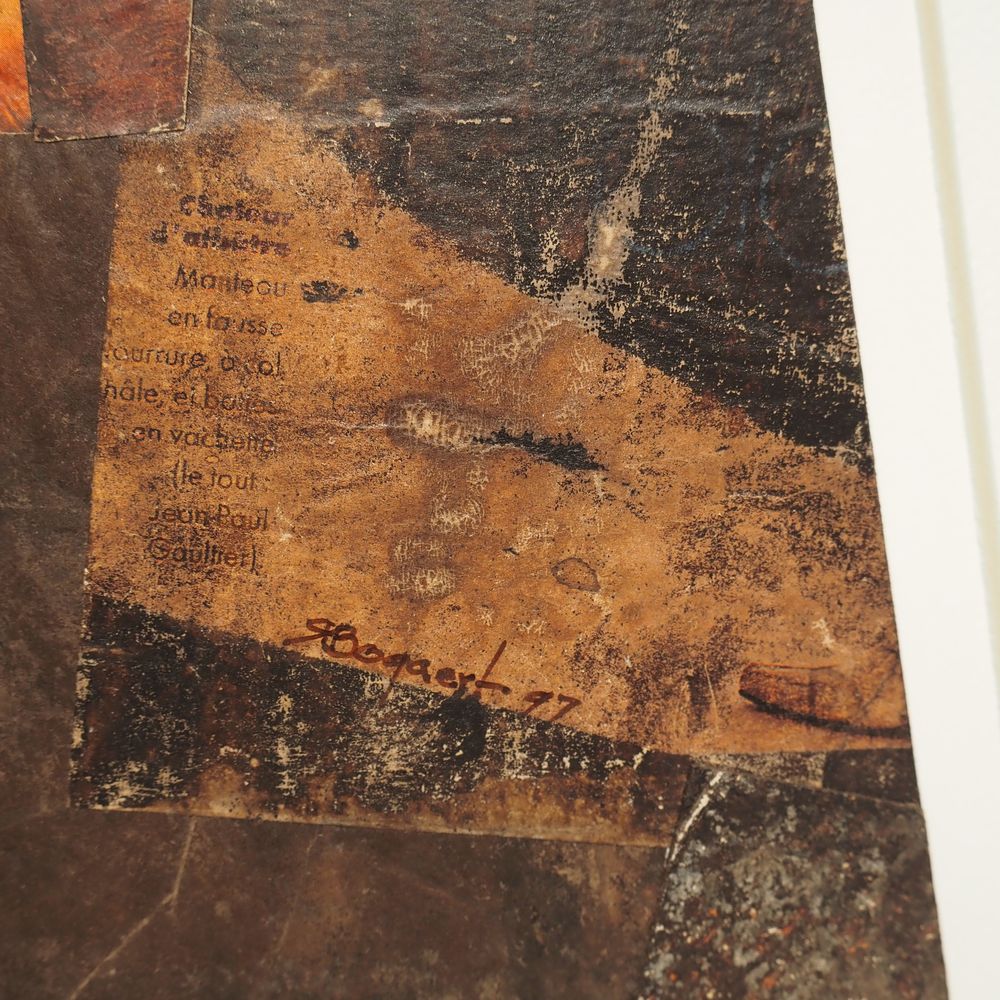 Roger Bogaert : Technique mixte, gouache et collage sur carton, signée coté droit, datée 91, (3), dim: 33,5 x 34,5 cm