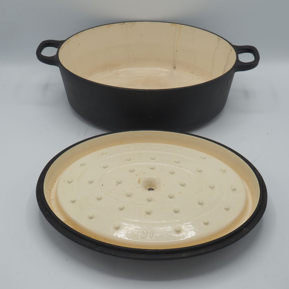 Chop Grill : Cocotte 5 L, fonte brut, intérieur émaillé crème
