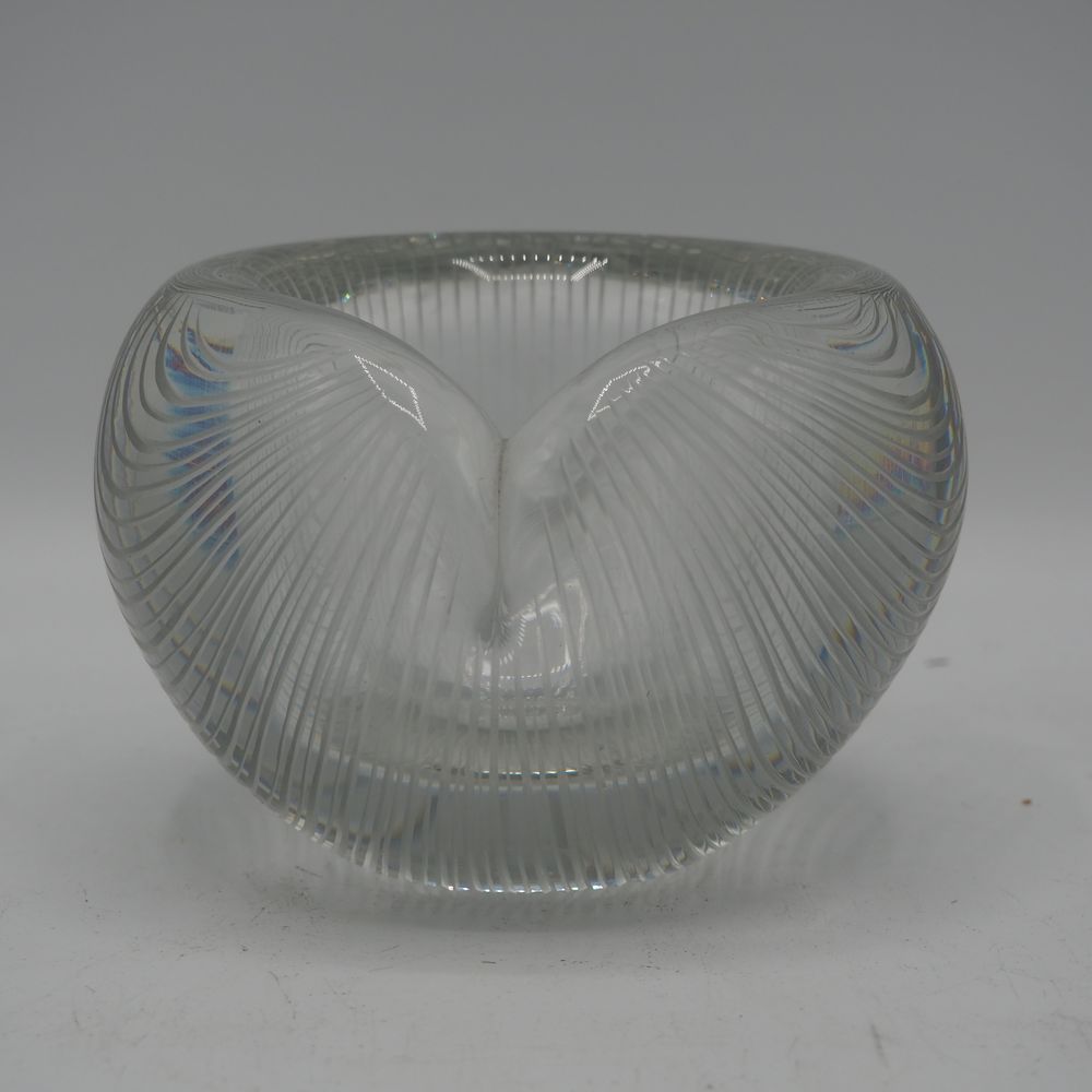 Tapio Wirkkala (1945-1985) : Vide poche, verre soufflé bouche et taillé à la meule, signé à la pointe, daté 1955, H: 8,3, diam: 12 cm