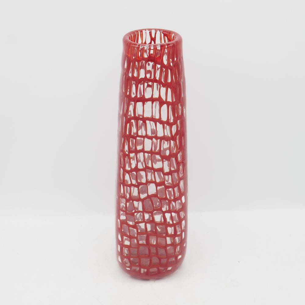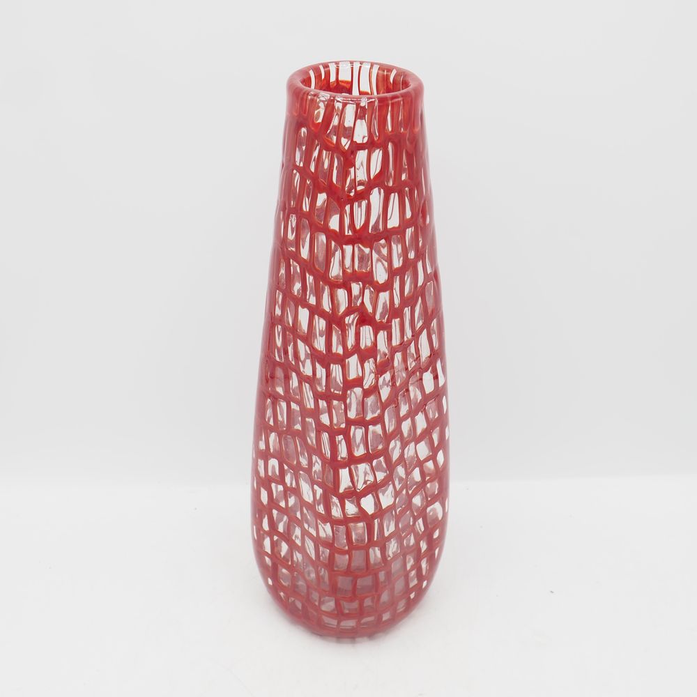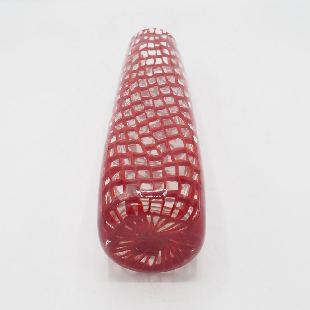 Tobia Scarpa / Venini / Murano : Vase, modèle Occhi, verre soufflé bouche avec murines couleur rouge, signé à la pointe sous la base, daté 1997, H: 31,5 cm