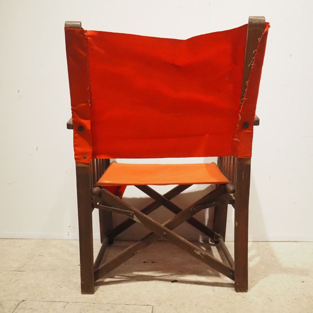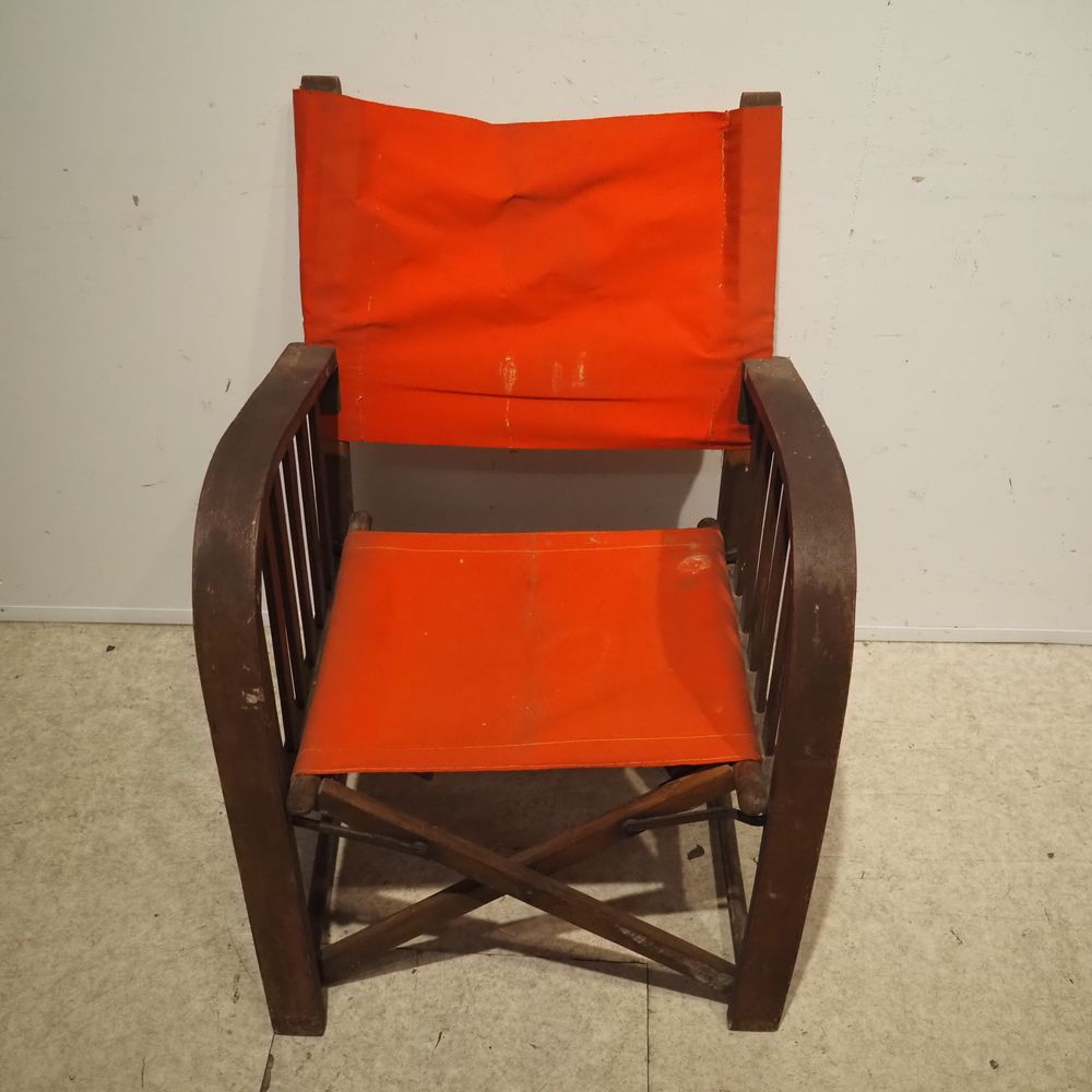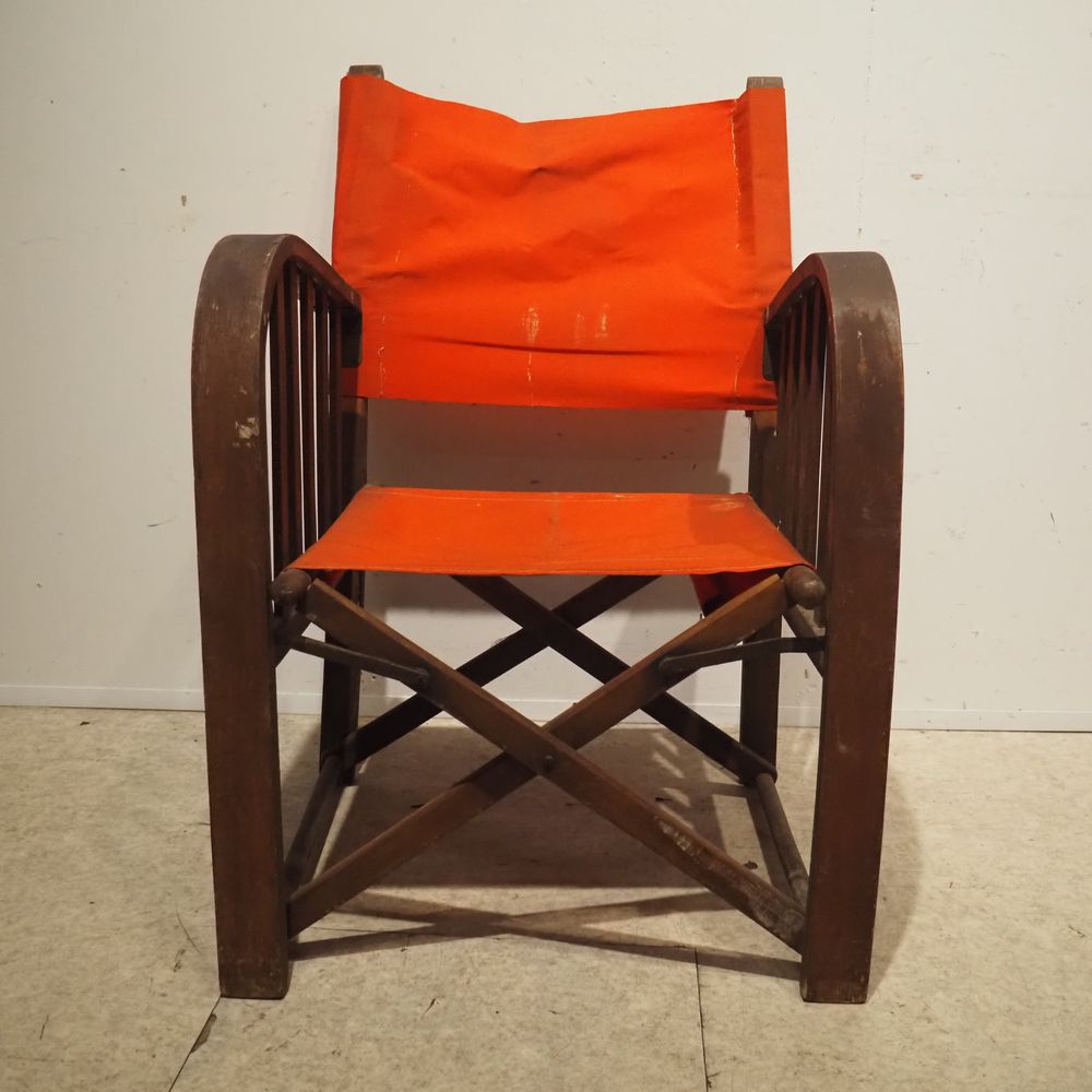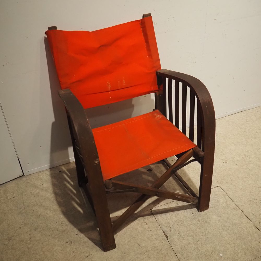 Tork : Paire de fauteuils de plage pliants vers 1930, structure en bois avec accottoirs cintrés, assise et dossier garnis de toile, (à rafraichir)