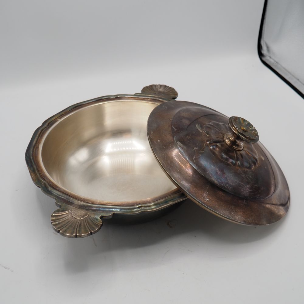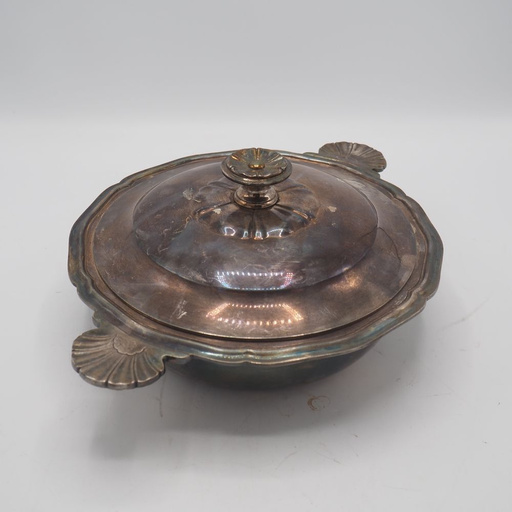 Christofle : Légumier couvert, métal argenté, anses et frêtel, diam: 25, H: 13 cm