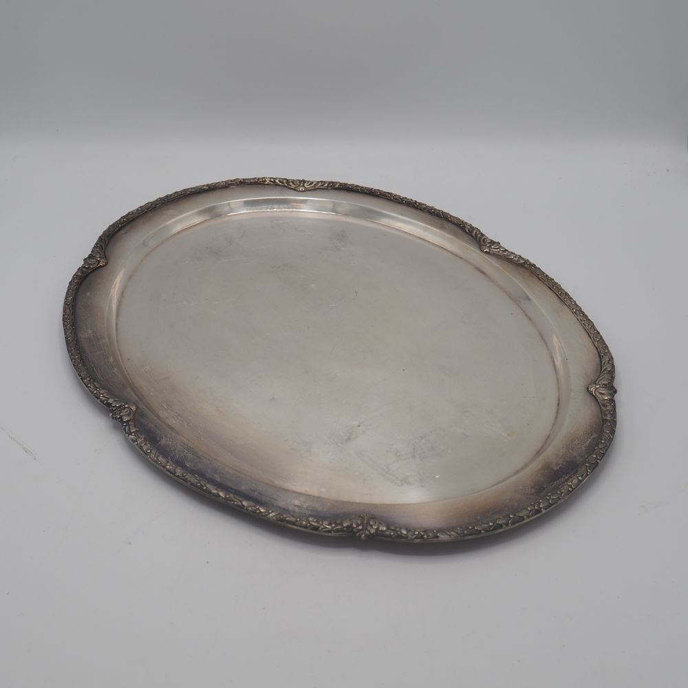 BW : Plateau ovale, métal argenté, monogrammé, dim: 45 x 35 cm