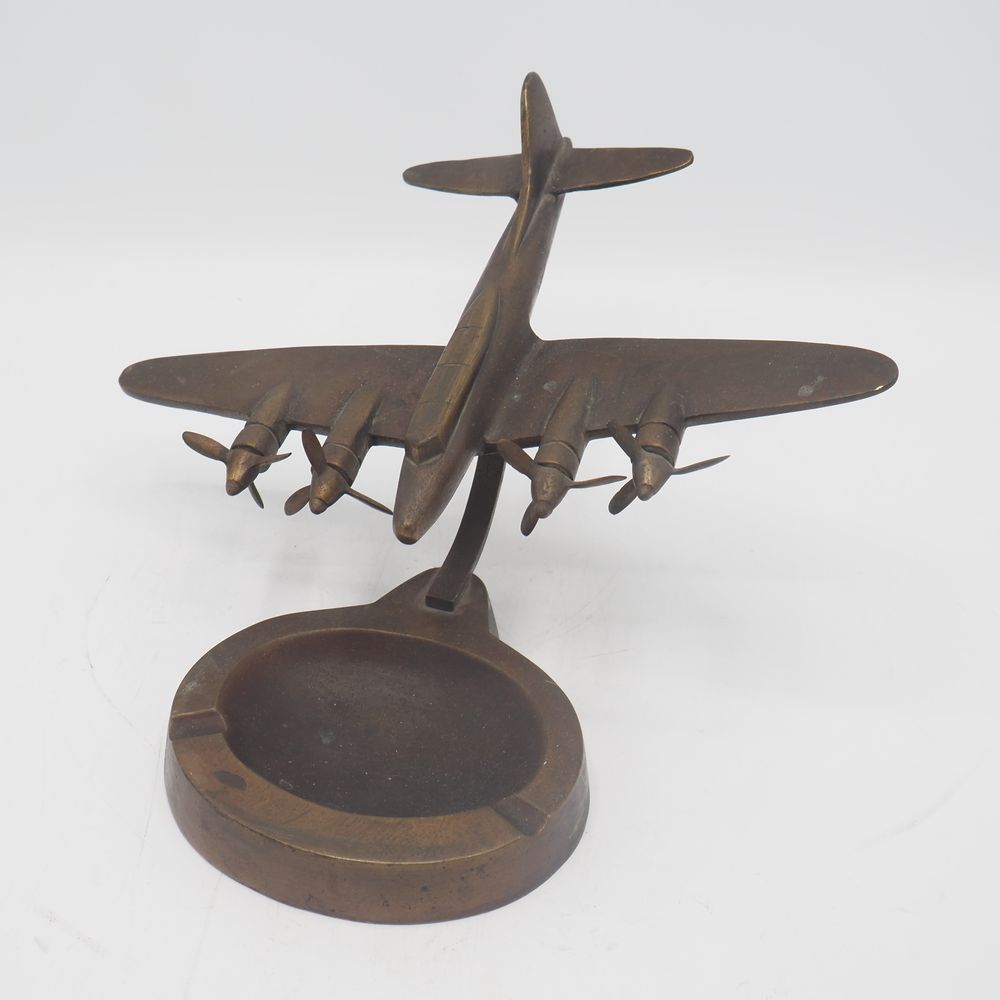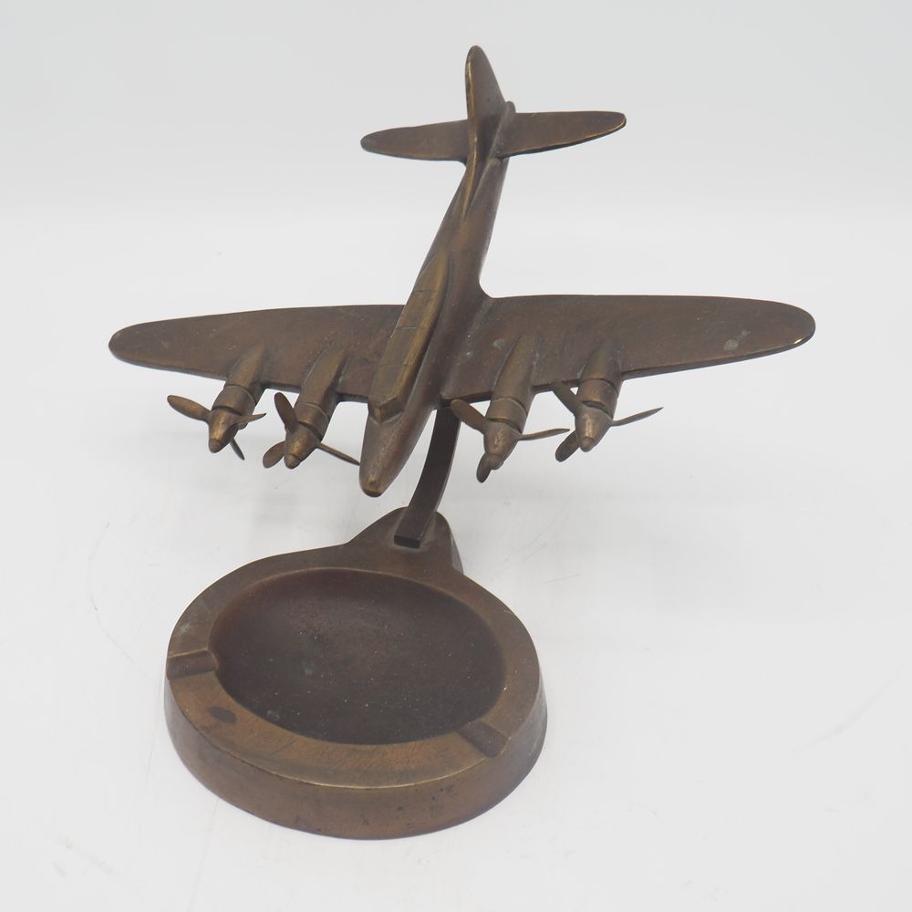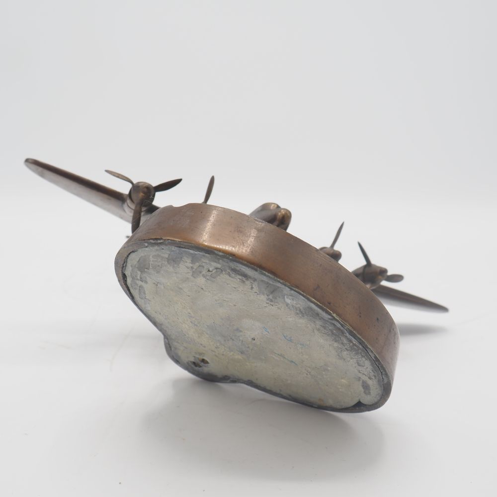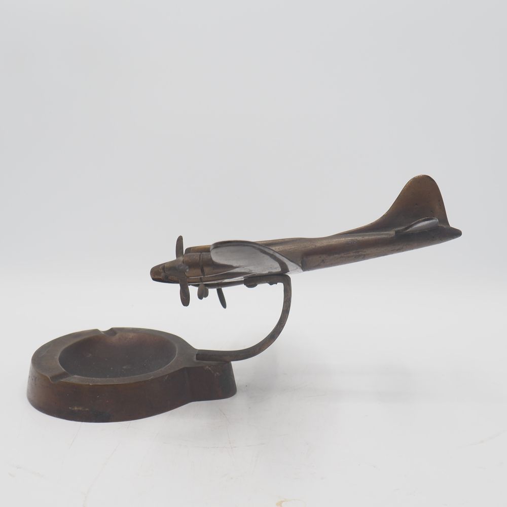 Cendrier vers 1950 : Bronze, representant un avion quadrimoteurs, H: 15, L: 27, Eng: 27 cm